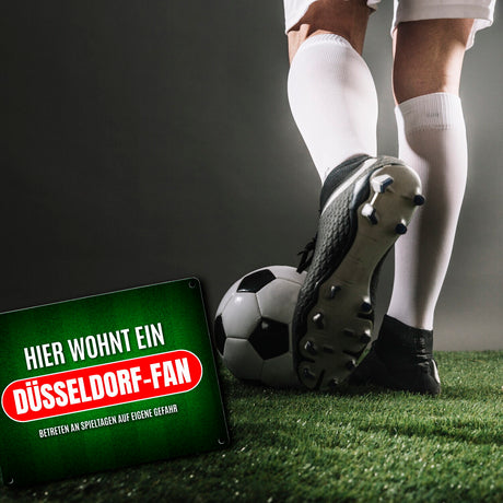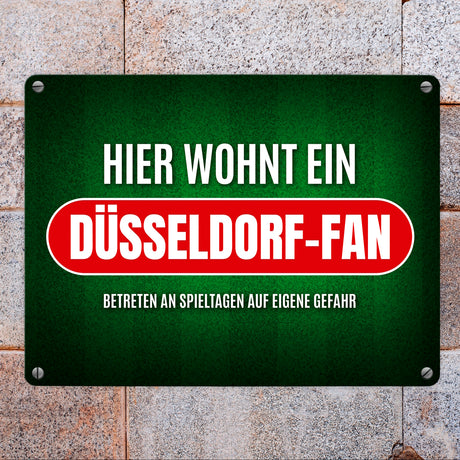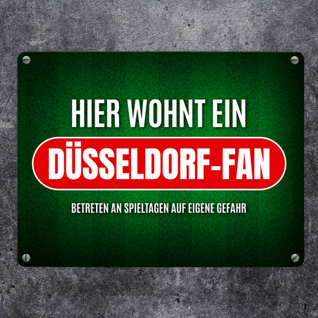 Ab €6,95Grundpreis /Nicht verfügbarAuf LagerHier wohnt ein Düsseldorf-Fan Metallschild mit Rasen Motiv