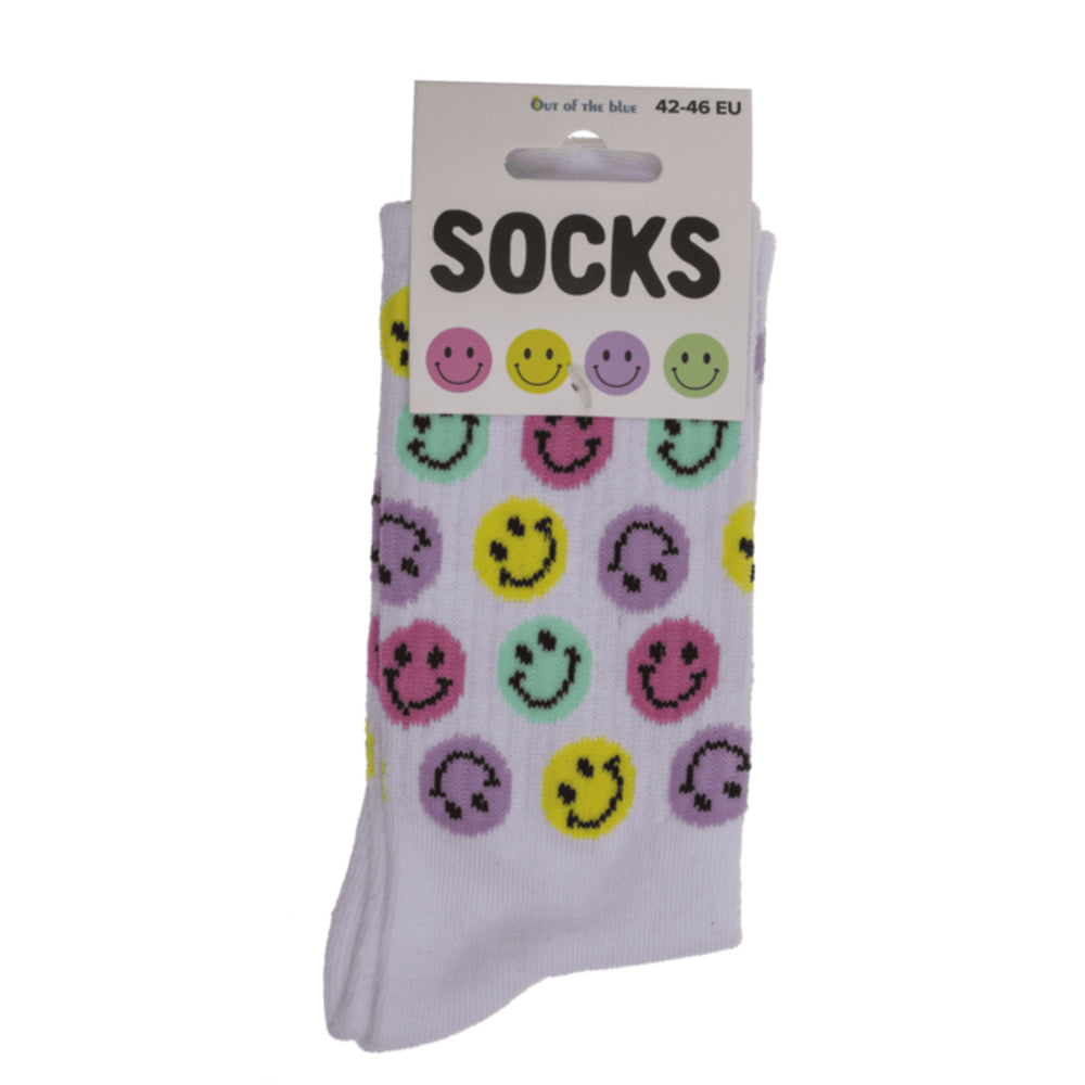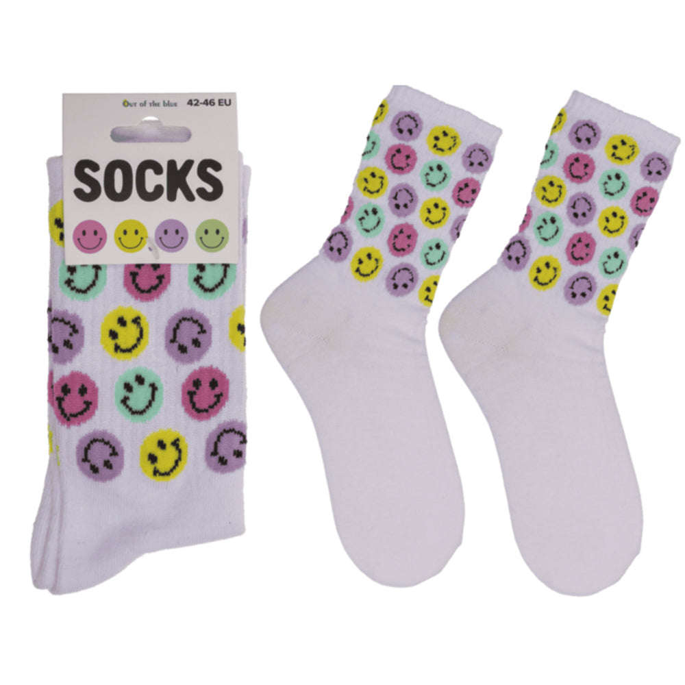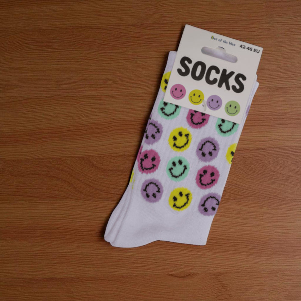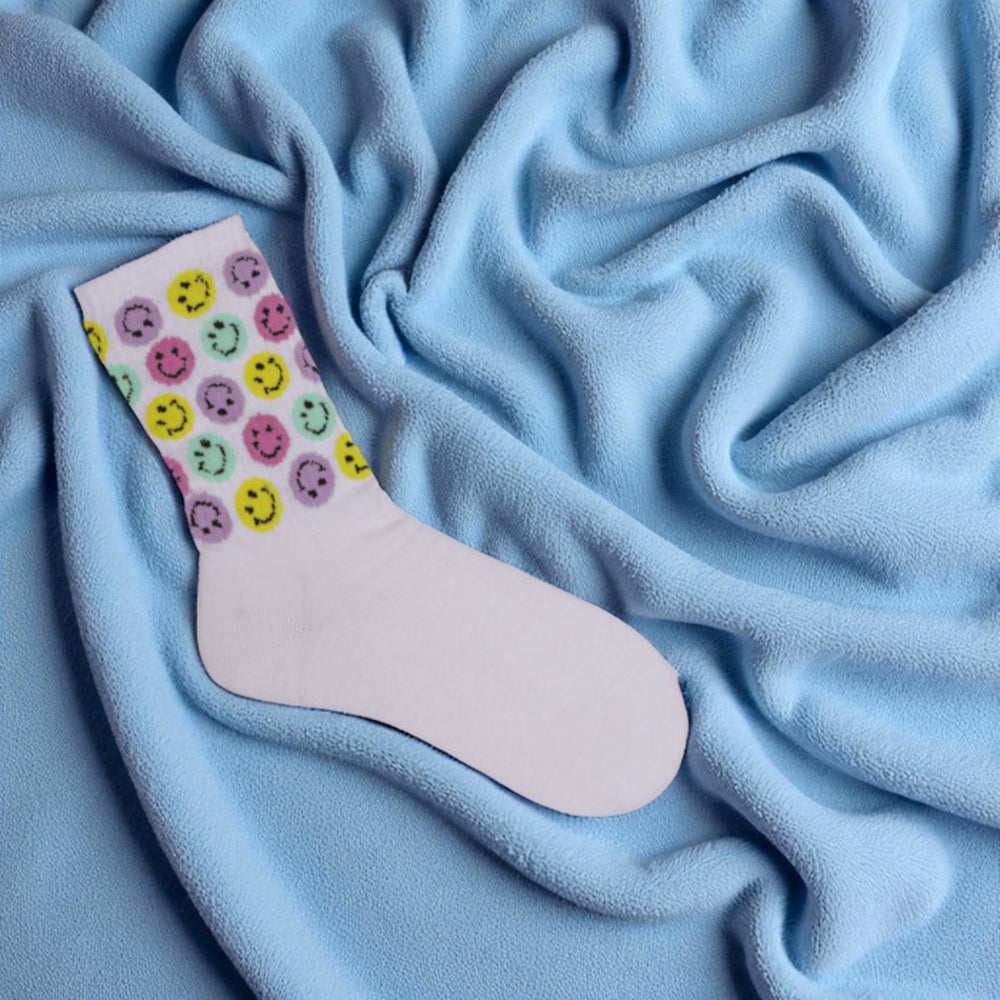 - Unsere Happy Socks beeindrucken mit einem fröhlichen, verspielten Design: strahlend weiße Tennissocken mit farbenfrohen Smiley-Gesichtern am Schaft. Diese Kombination aus klassischer Sportlichkeit und fröhlicher Ausgelassenheit sorgt nicht nur für gute Laune, sondern auch für angenehme Tragekomfort.