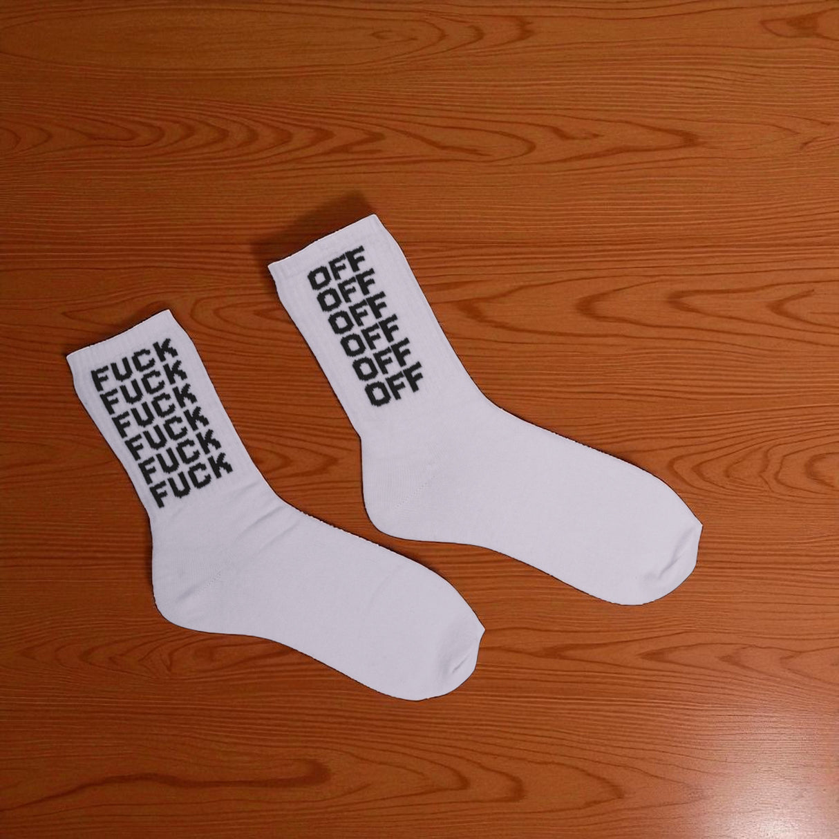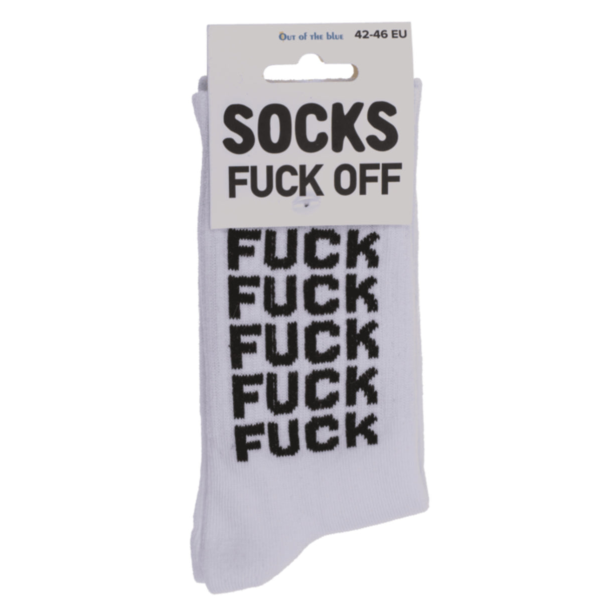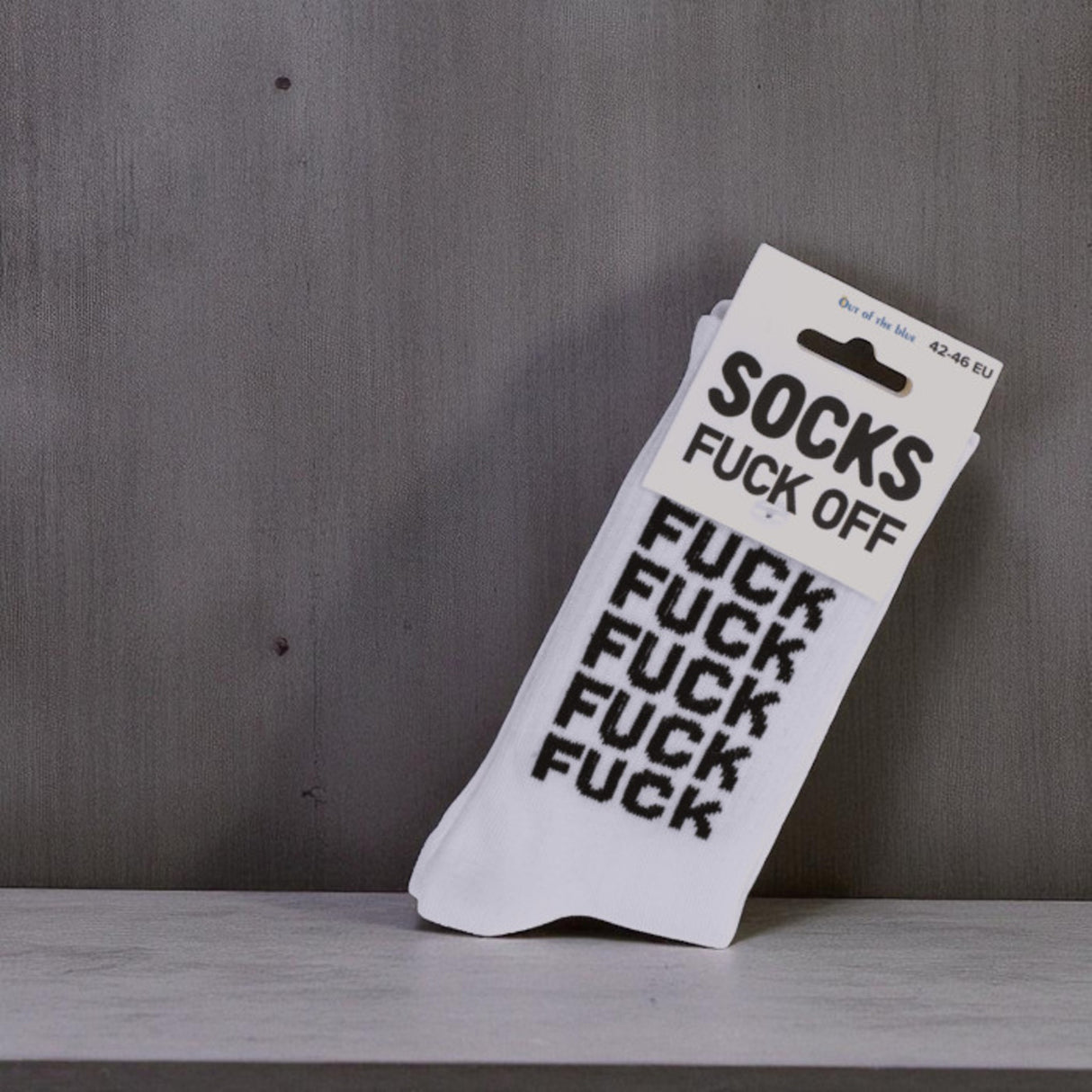 - Diese eleganten weißen Tennissocken sind nicht nur bequem, sondern auch ein echter Hingucker. Am Schaft prangt mehrmals in kontrastierendem Schwarz der Text "FUCK OFF". Ein Design, das deine Füße zu wahren Brainfuck-Machern macht und jedem ein Grinsen ins Gesicht zaubert!