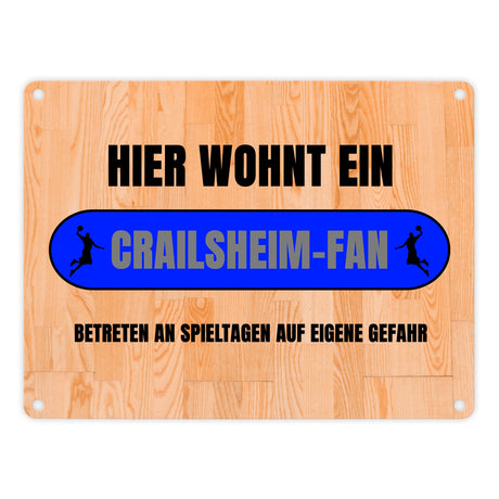 Hier wohnt ein Crailsheim-Fan Metallschild in 15x20 cm mit Turnhallenboden Motiv