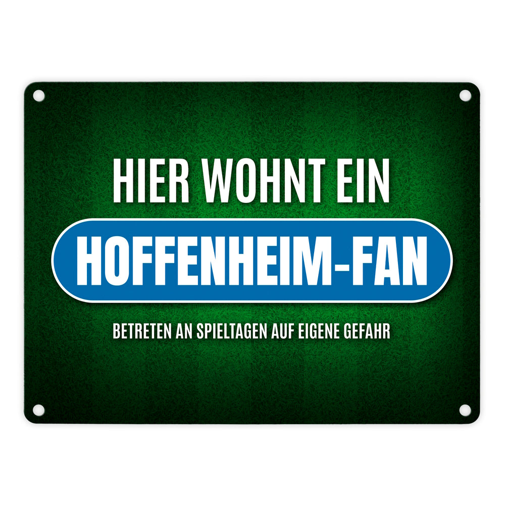 - 1x Hier wohnt ein Hoffenheim-Fan Metallschild mit Rasen Motiv in der gewählten Größe