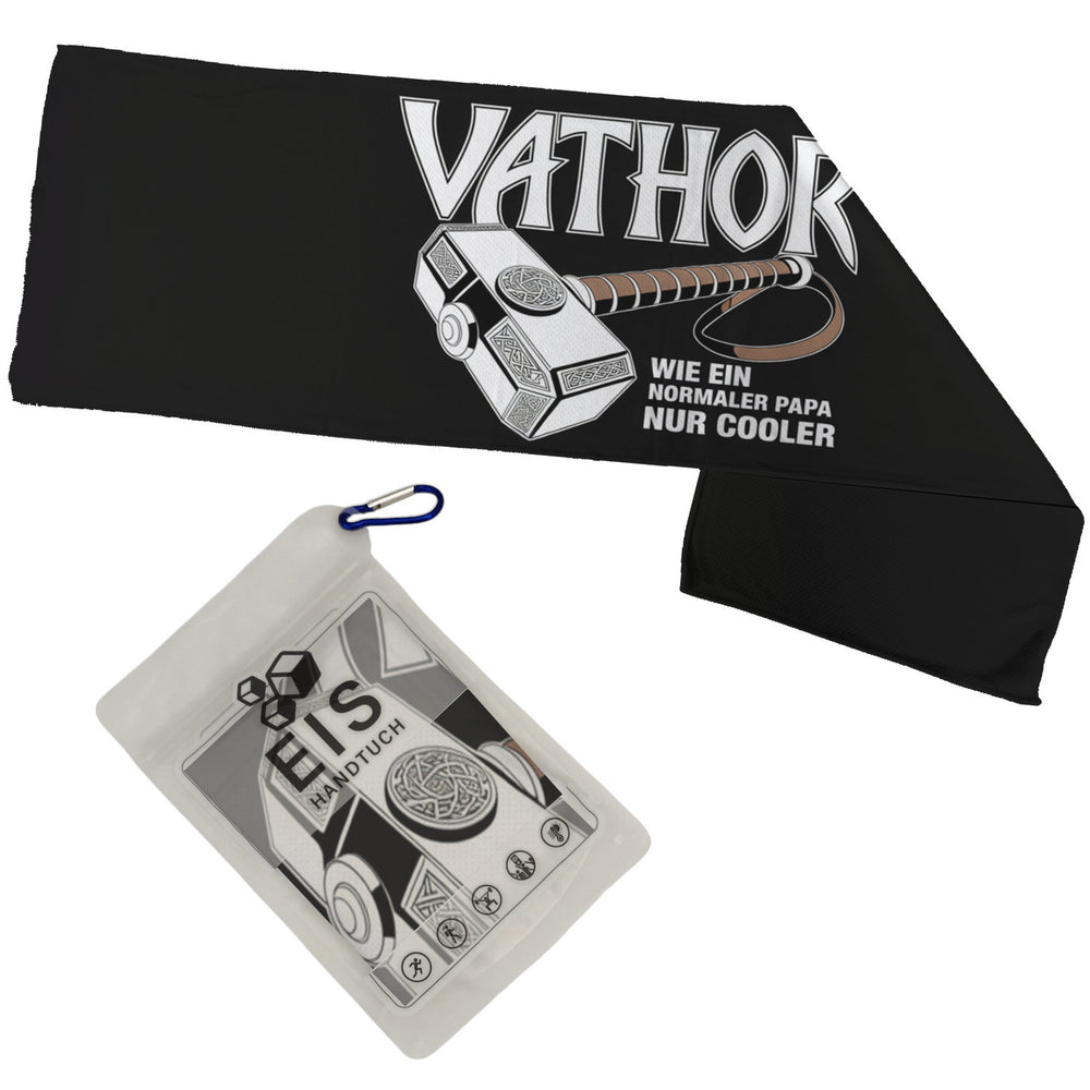 - 1x Thors Hammer Papa Spruch Vathor Eishandtuch in der gewählten Größe