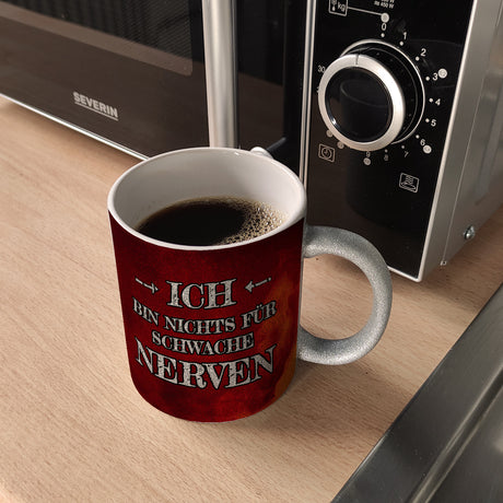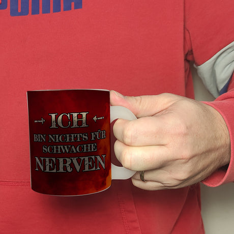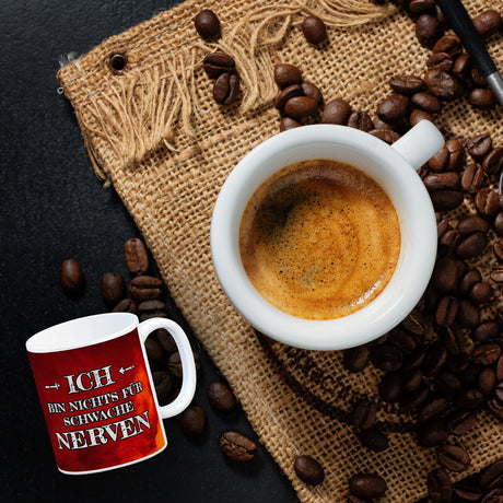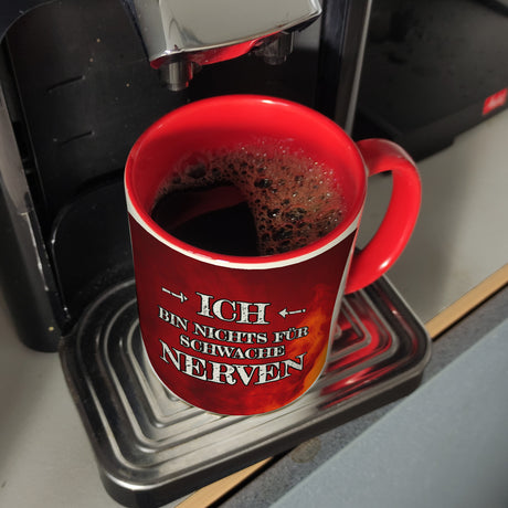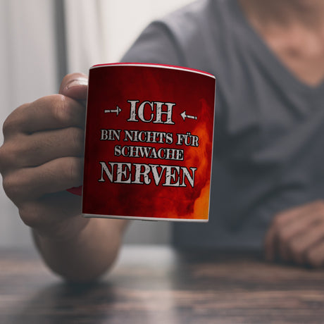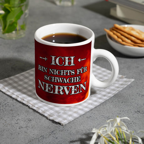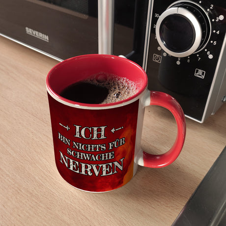 Ab €12,95Grundpreis /Nicht verfügbarAuf LagerIch bin nichts für schwache Nerven Kaffeebecher mit Flammenhintergrund