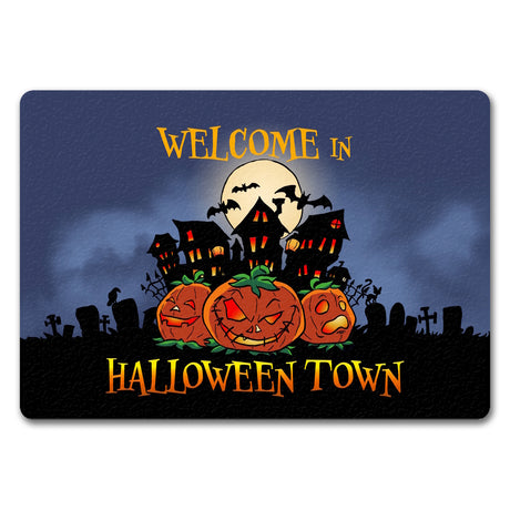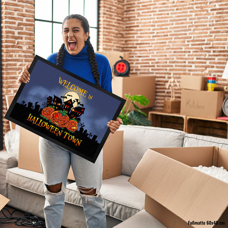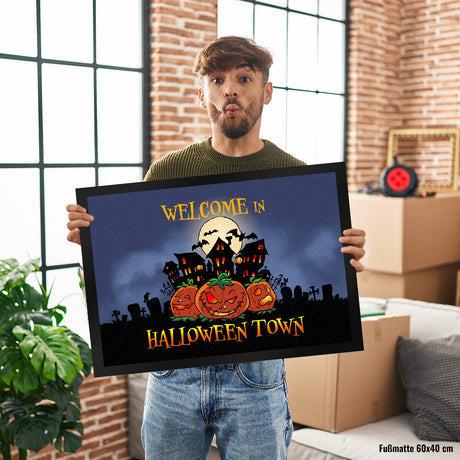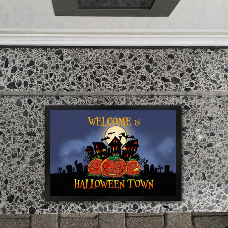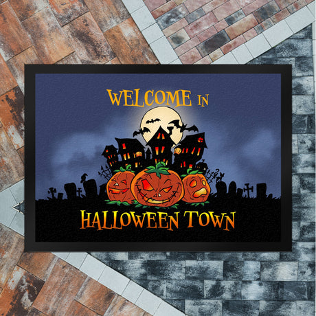 Ab €16,95Grundpreis /Nicht verfügbarAuf LagerFußmatte mit gruseligen Halloween Design und Spruch - Welcome in Halloween Town