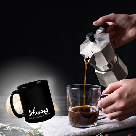 Schwarz - ohne Milch und ohne Zucker Kaffeebecher mit Spruch