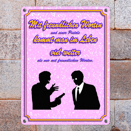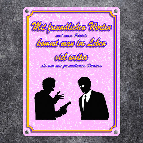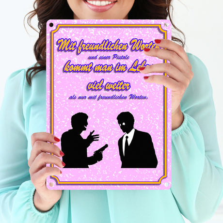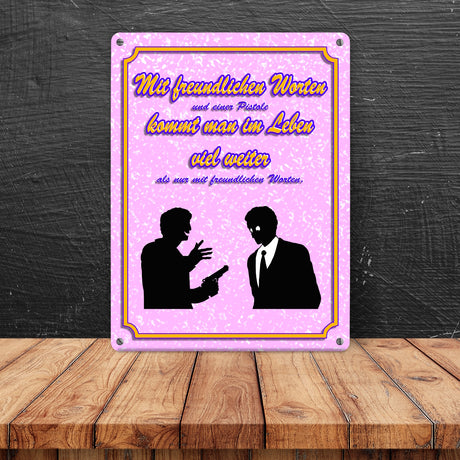 Ab €8,95Grundpreis /Nicht verfügbarAuf LagerMetallschild mit freundlichen Worten und einer Pistole Lebensmotte Weisheit