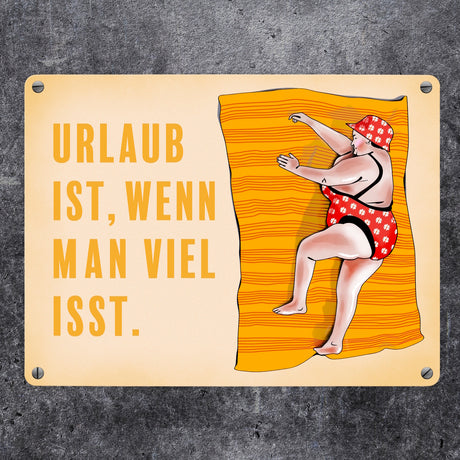 Ab €12,95Grundpreis /Nicht verfügbarAuf LagerMetallschild Urlaub ist, wenn man viel isst mit Strandmotiv und Spruch zum Thema Essen