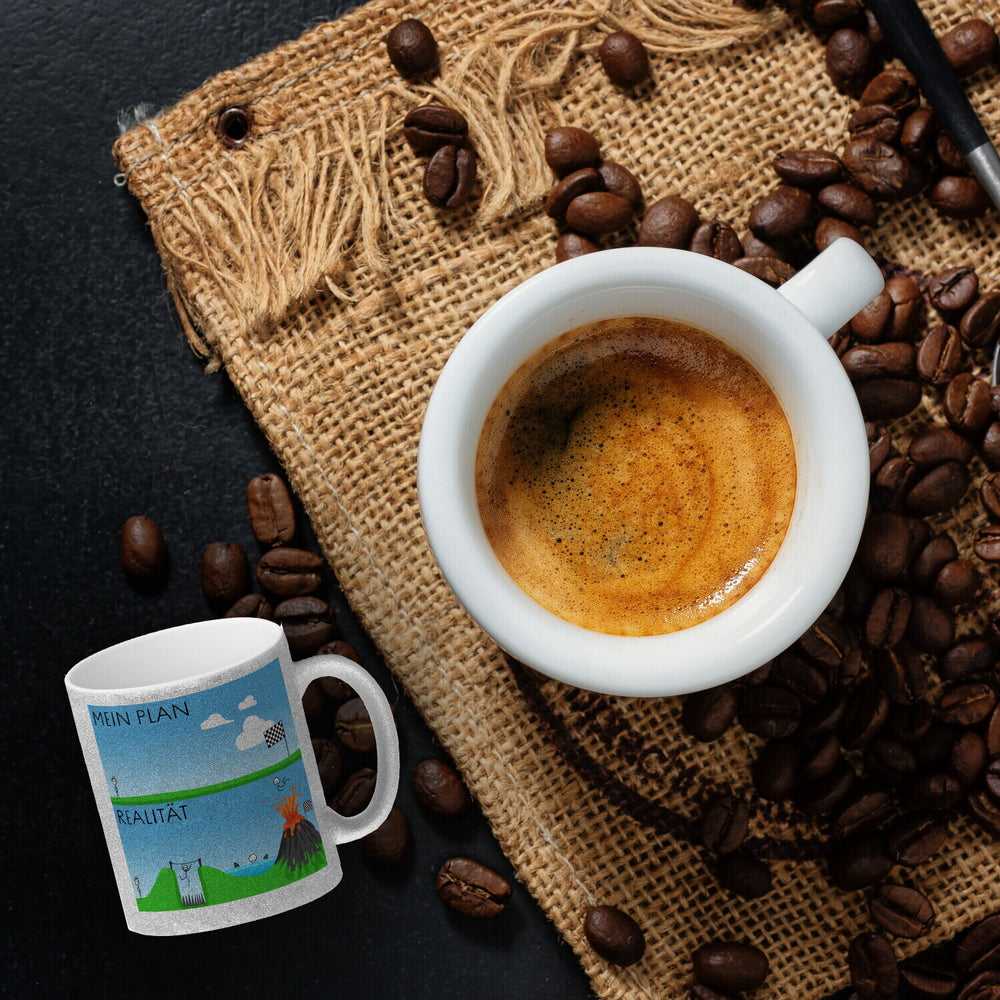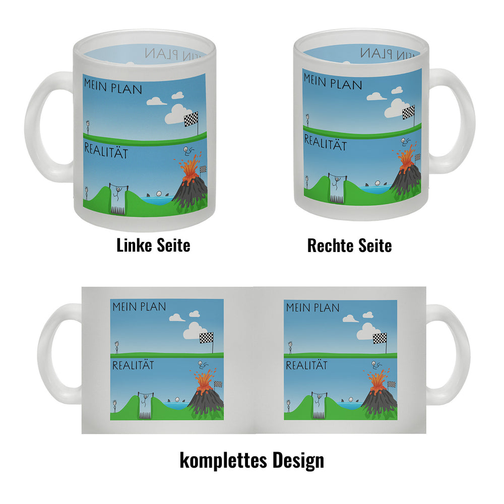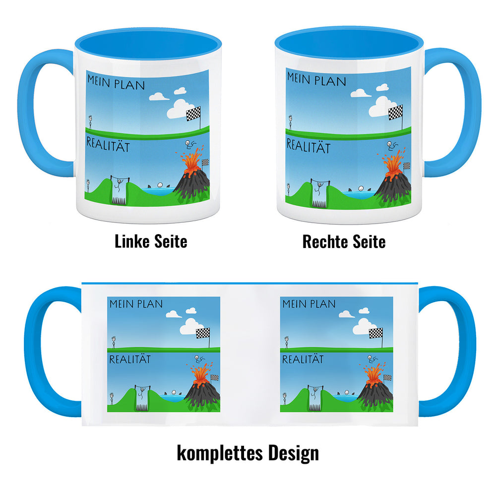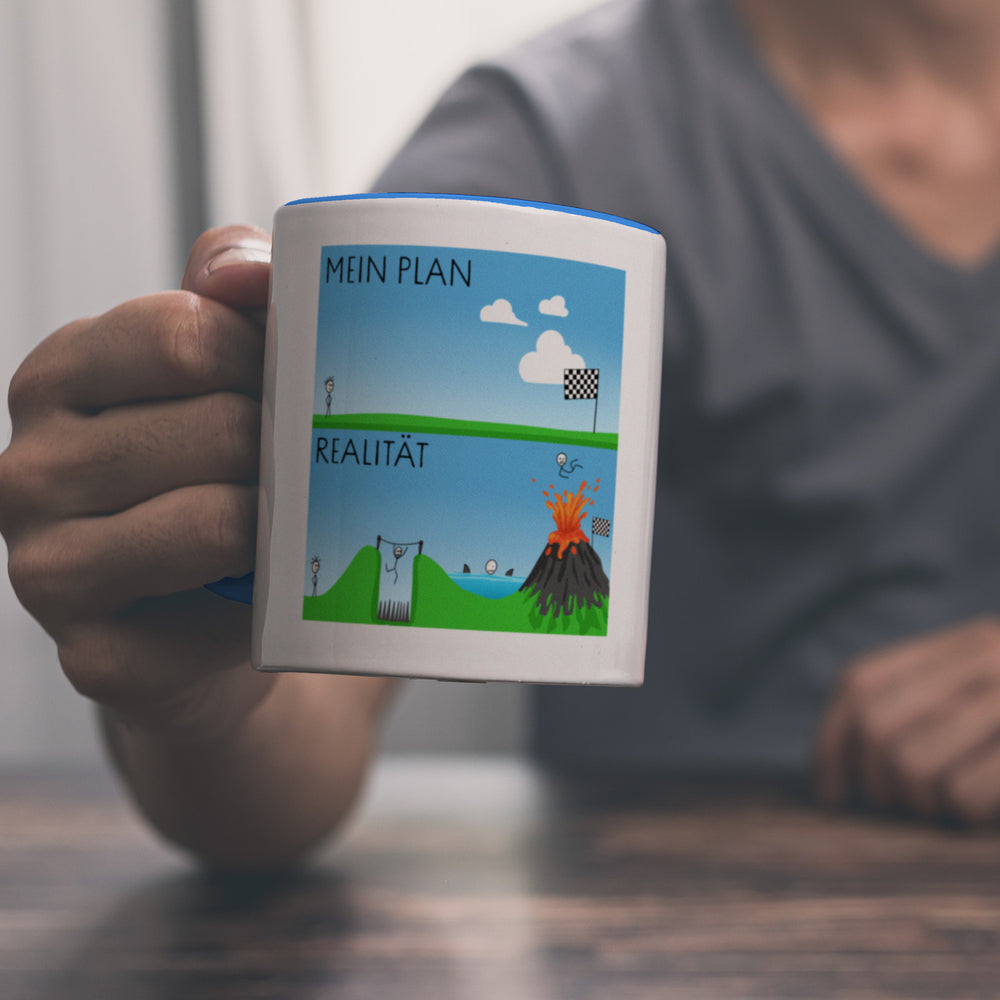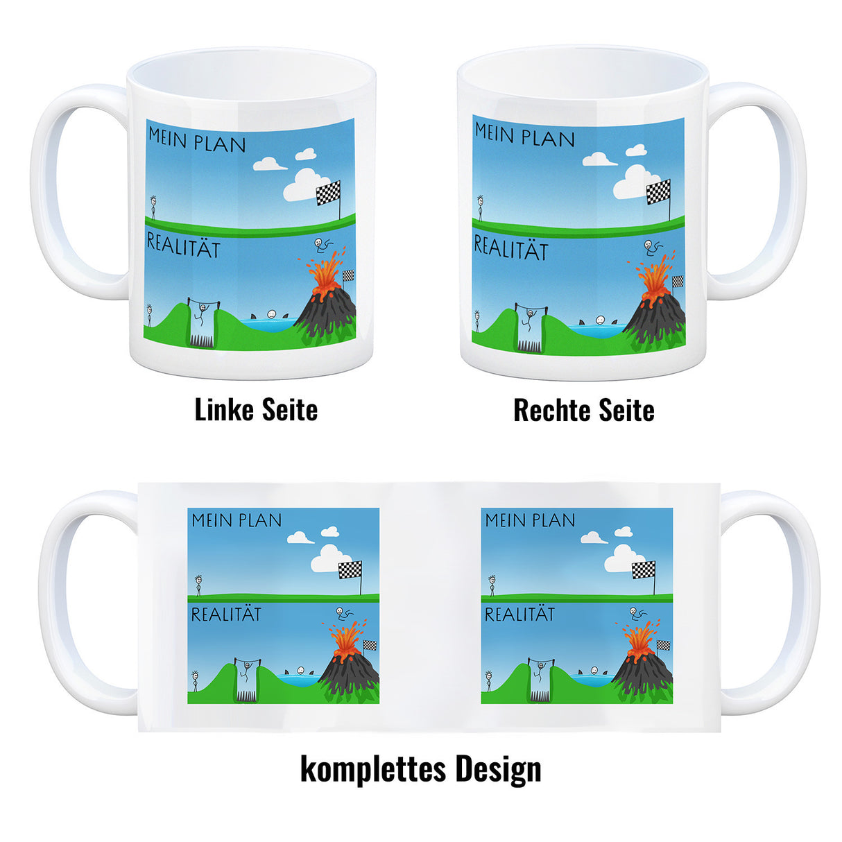 - Du suchst nach einer witzigen Tasse mit einem besonderen Motiv darauf? Dann ist diese Tasse perfekt für dich. Die Kaffeetasse mit dem Witzigen Motiv zeigt den lustigen Unterschied zwischen Plan und Realität.