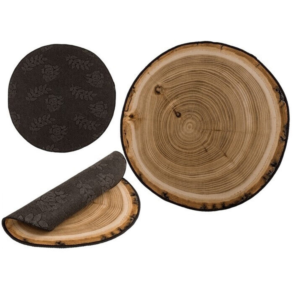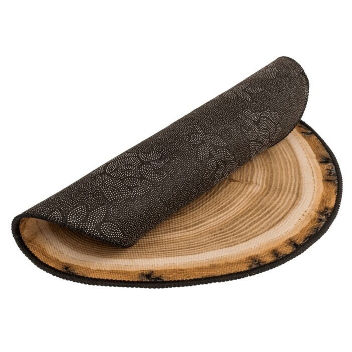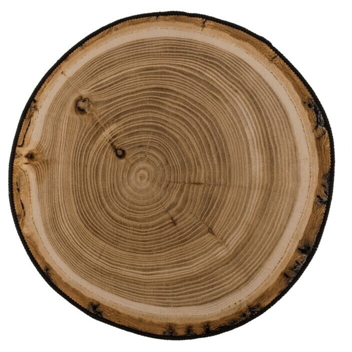 Dank des fotorealistischen Drucks sieht der Teppich aus wie eine echte Holzscheibe mit Jahresringen. Material: Polyester | Für Waschmaschine geeignet, bitte Warn- und Pflegehinweise beachten.