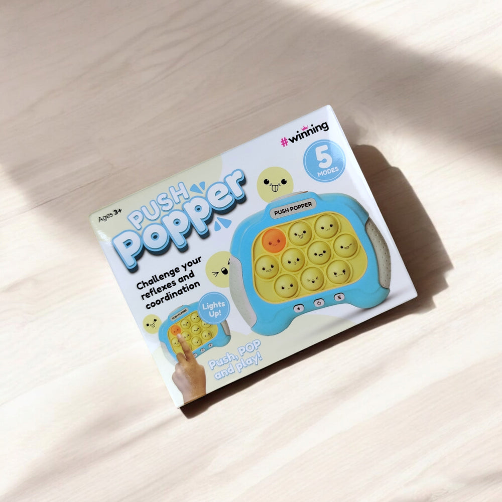 - Braucht dein Kind eine Pause vom Bildschirm? Dann ist das Push Popper Fidget Toy in Blau genau das Richtige! Es bietet Spaß, erleichtert Stress und fördert die Konzentration. Ideal für kleine Hände, perfekt für lange Autofahrten oder einfach zum Entspannen nach der Schule.