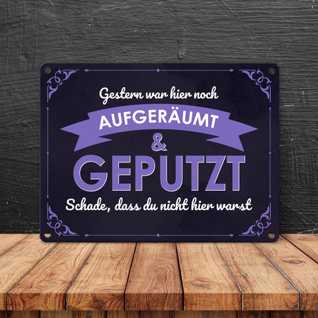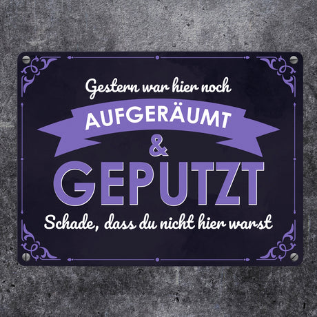 Ab €6,95Grundpreis /Nicht verfügbarAuf LagerMetallschild mit Spruch - Gestern war hier noch aufgeräumt & geputzt
