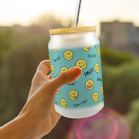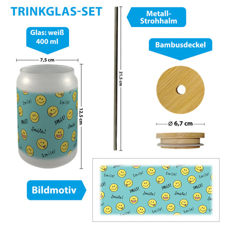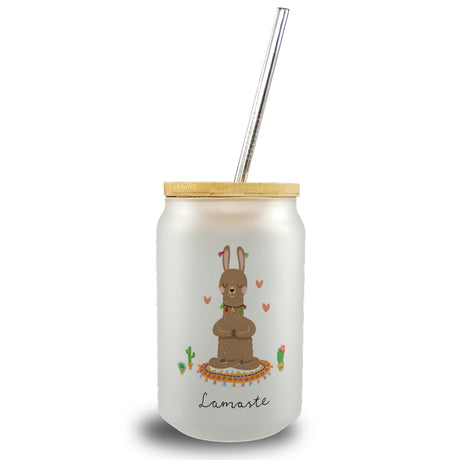 Lama Trinkglas mit Bambusdeckel mit Spruch Lamaste