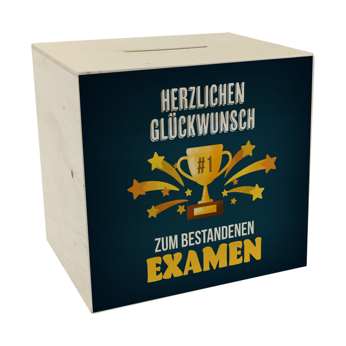 - 1x Herzlichen Glückwunsch Spardose mit Spruch zum erfolgreichen Examen in der gewählten Ausführung