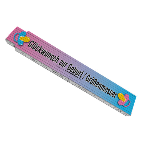 Schnuller Meterstab aus Holz mit Spruch Glückwunsch zur Geburt/Größenmesser