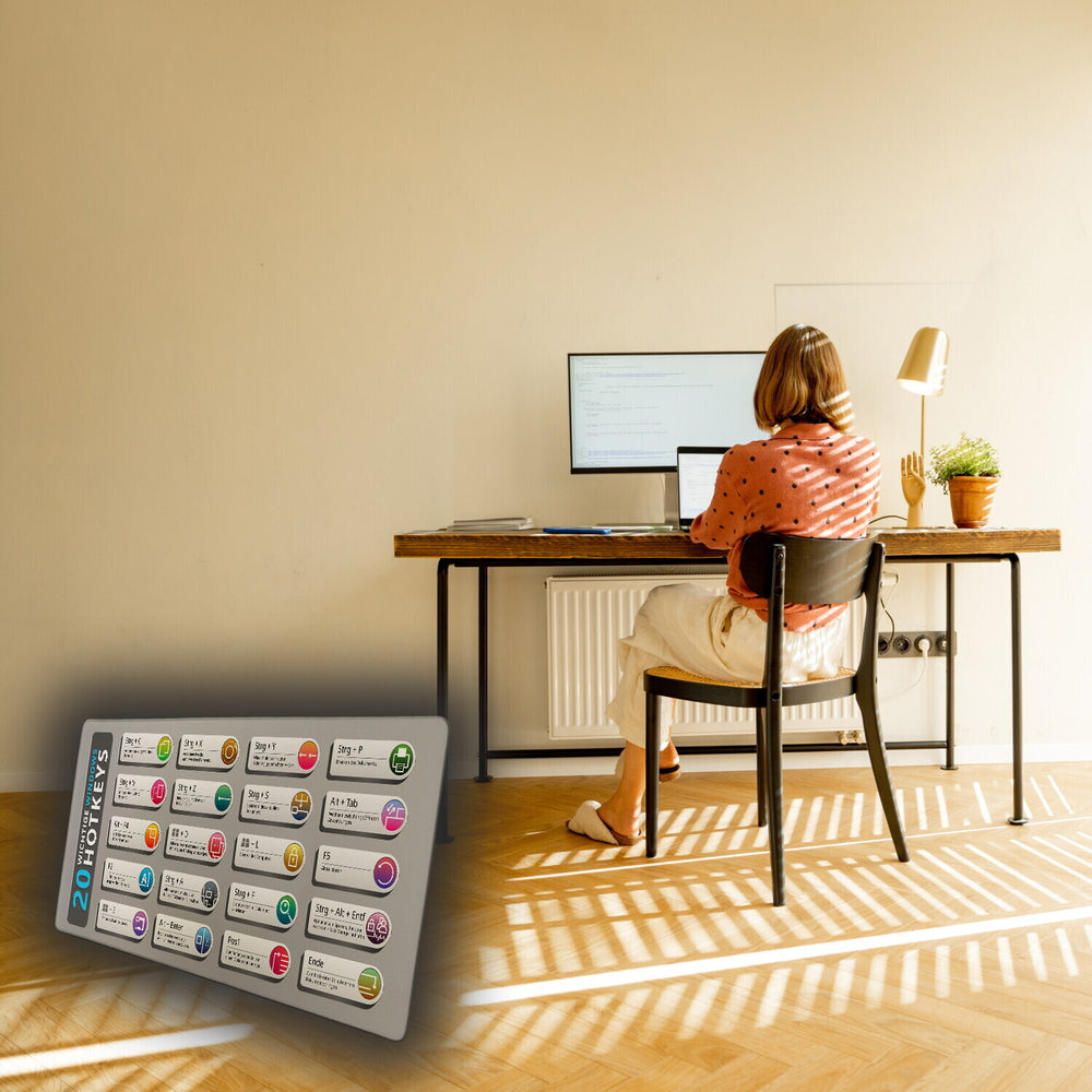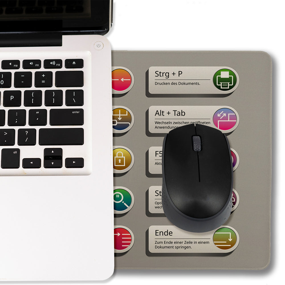 Sind Sie bereit, Ihren Schreibtisch in ein Powerhouse der Effizienz zu verwandeln? Dann ist unsere Windows Hotkeys Schreibtischunterlage genau das Richtige für Sie! In der großzügigen Größe von 69x31 cm bietet dieses XXL Mauspad nicht nur eine komfortable Ablagefläche, sondern ist auch ein ästhetisches Highlight für jeden Arbeitsbereich. Das Besondere? 20 leuchtend bunte, kreisförmige Buttons zeigen Ihnen auf elegante Weise die wichtigsten Windows-Hotkeys. Schluss mit dem Verwirrspiel der Tastenkombinationen! Einfach hinschauen und in Sekundenschnelle zwischen Anwendungen wechseln und Aufgaben mit Leichtigkeit meistern. Jedes Symbol ist liebevoll gestaltet und kommt mit einer klaren, deutschen Erklärung daher – perfekt für den täglichen Gebrauch, egal ob im Büro, im Homeoffice oder im kreativen Atelier.Aber nicht nur Technikliebhaber kommen hier auf ihre Kosten. Diese Schreibtischunterlage eignet sich wunderbar als praktisches Geschenk: Denken Sie an Studenten, IT-Profis oder einfach jeden, der von einem organisierten Arbeitsplatz profitiert. Gönnen Sie sich den Luxus der Ordnung und verleihen Sie Ihrem Arbeitsplatz gleichzeitig einen Hauch von Stil. Wer hätte gedacht, dass Produktivität so gut aussehen kann? Holen Sie sich jetzt Ihre geheime Waffe für eine effizientere Arbeitswelt!