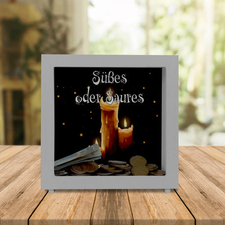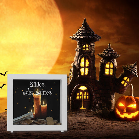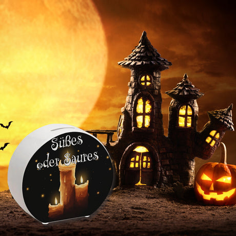 Ab €12,95Grundpreis /Nicht verfügbarAuf LagerSpardose mit gruseligem Kerzen Motiv und Spruch - Süßes oder Saures