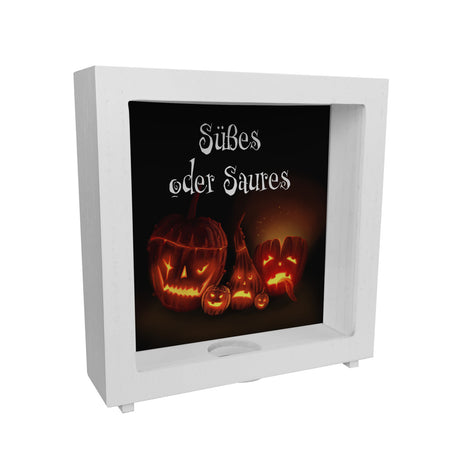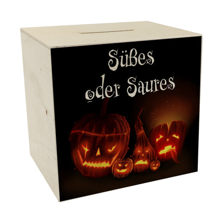 Ab €12,95Grundpreis /Nicht verfügbarAuf LagerSpardose mit gruseligem Kürbisköpfe Motiv und Spruch - Süßes oder Saures