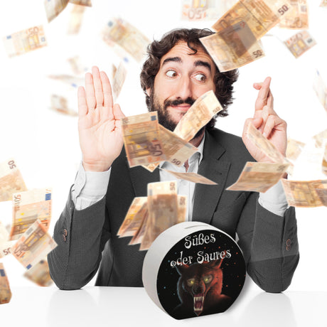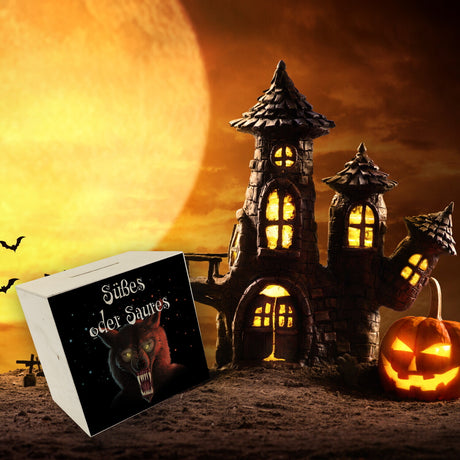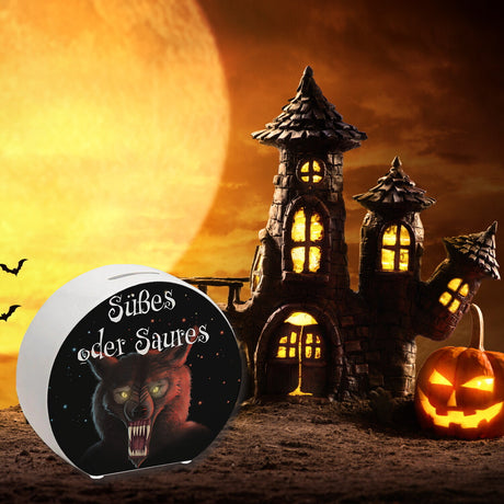 Ab €12,95Grundpreis /Nicht verfügbarAuf LagerSpardose mit gruseligem Werwolf Motiv und Spruch - Süßes oder Saures