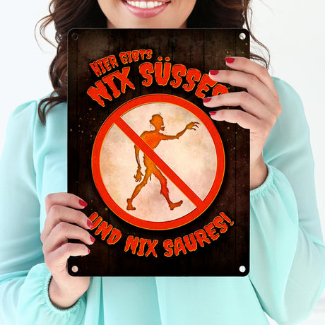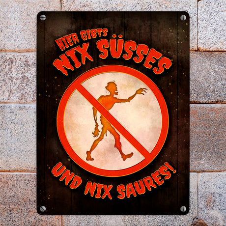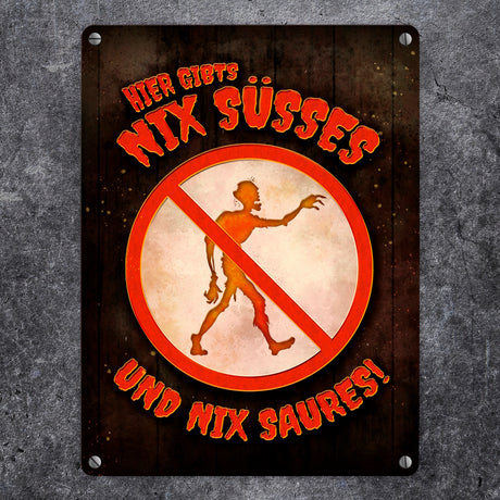 Ab €8,95Grundpreis /Nicht verfügbarAuf LagerNix Süßes und nix Saures Metallschild mit Zombie Motiv