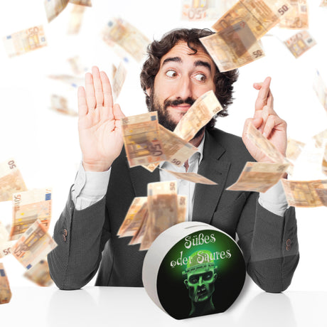 Ab €16,95Grundpreis /Nicht verfügbarAuf LagerSpardose mit gruseligem Zombie Motiv und Spruch - Süßes oder Saures