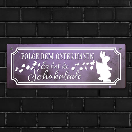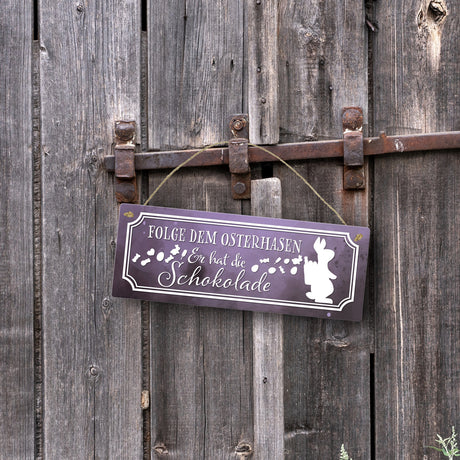 Ab €6,95Grundpreis /Nicht verfügbarAuf LagerFolge dem Osterhasen, er hat die Schokolade Metallschild