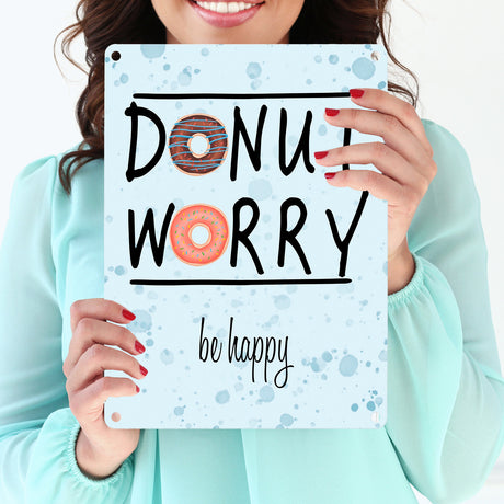 Ich arbeite an meinem Six Pack Metallschild mit leckeren Donuts