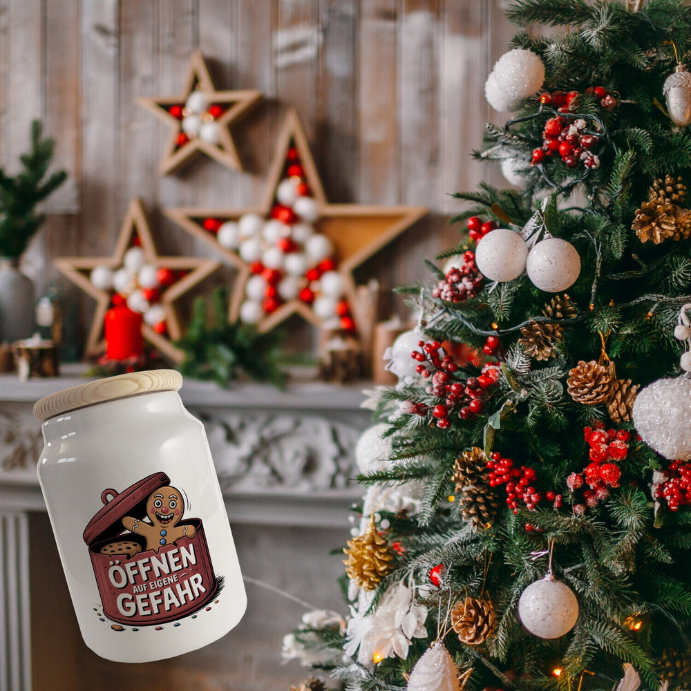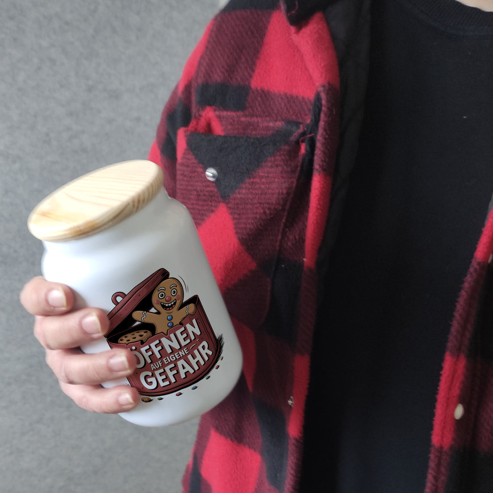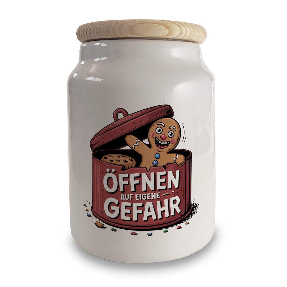 Lustiger Lebkuchenmann Öffnen auf eigene Gefahr Keksdose