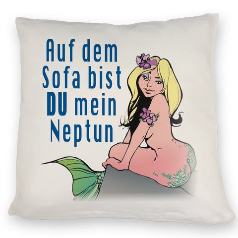Meerjungfrau Kissen mit Spruch Auf dem Sofa bist du mein Neptun