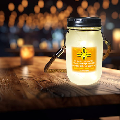 Tauflicht Solarlicht mit Spruch aus der Bibel Johannes 8,12