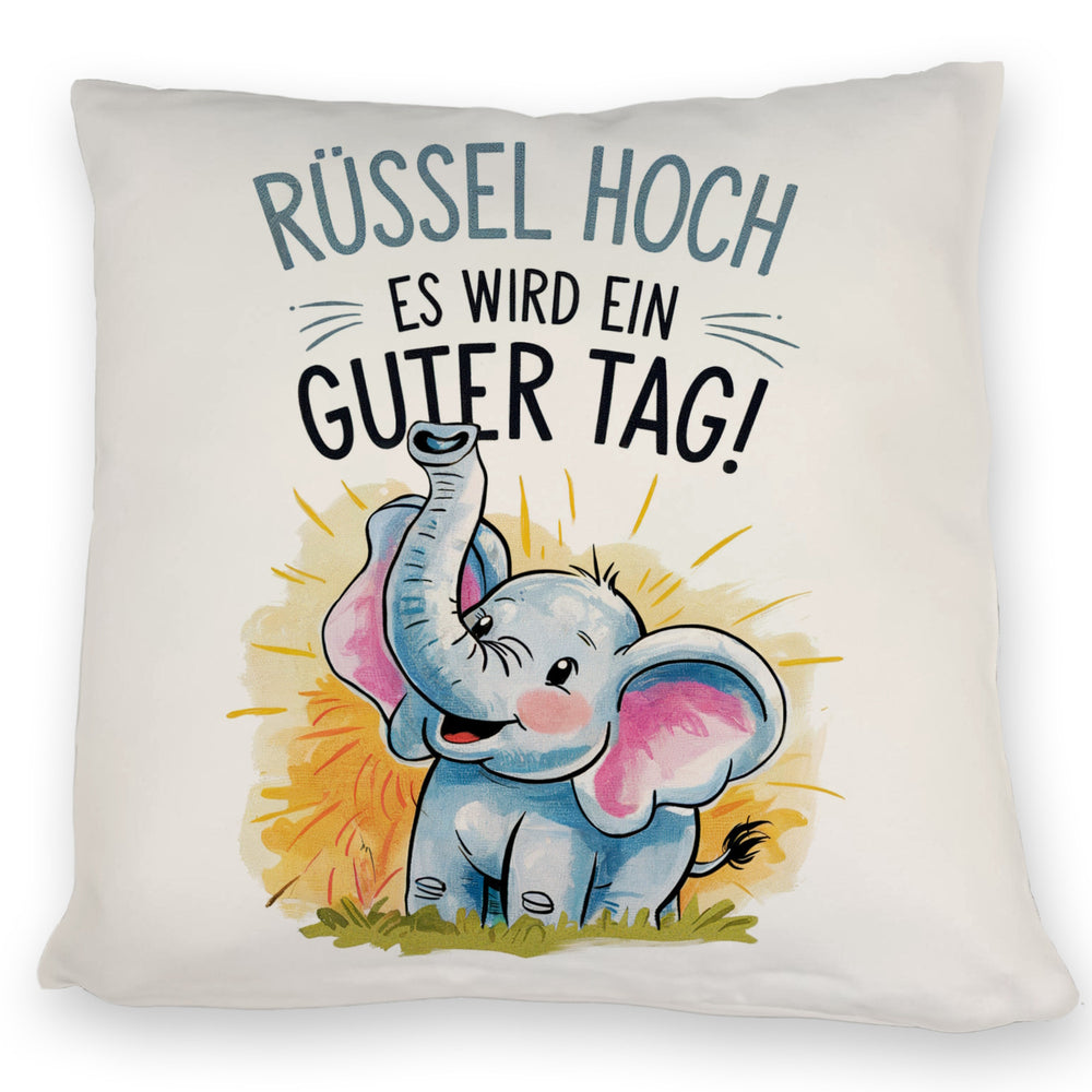 • 1x Fröhlicher Cartoon Elefant Rüssel hoch Kissen in der gewählten Ausführung