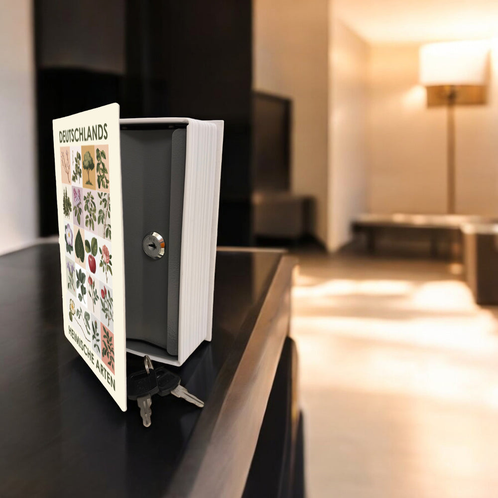 Willkommen in der zauberhaften Welt der verborgenen Schätze! Mit dem Pflanzenbuch Booksafe Deutschlands heimische Arten bringen Sie ein Stück Natur und Sicherheit direkt in Ihr Zuhause. Dieses charmante Bücherversteck erscheint wie ein ganz gewöhnliches Buch aus der botanischen Abteilung, doch in seinem Inneren birgt es Ihre wertvollsten Geheimnisse. Ob Sie nun leidenschaftlicher Naturfreund, begeisterter Bücherwurm oder ein Sicherheitsbewusster sind – dieses Produkt ist wie geschaffen für Sie.Erhältlich in zwei praktischen Größen, 12x18 cm und 15,5x24 cm, passt es perfekt in jedes Bücherregal. Die liebevoll gestalteten Illustrationen von einheimischen Pflanzen sorgen für einen Hauch von Natürlichkeit und laden dazu ein, die Flora Deutschlands zu entdecken. Doch das wahre Highlight liegt im Inneren: eine geheime Kammer für Ihre Kostbarkeiten, sei es Schmuck, Geld oder die streng gehütete Rezeptur von Omas Apfelstrudel.Perfekt als stilvolles Geschenk für Naturliebhaber und alle, die mehr Sicherheit in ihrem Leben wünschen. Beim nächsten Urlaub einfach ins Gepäck legen und mit einem guten Gefühl verreisen! Mit dem Pflanzenbuch Booksafe verbinden Sie Praktikabilität mit der Schönheit der Natur – ein unvergessliches Geschenk, das stets in Erinnerung bleibt. Entdecken Sie das Geheimnis hinter dem Buchcover und lassen Sie sich von der eleganten Magie verführen!