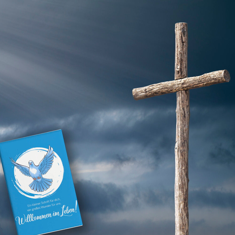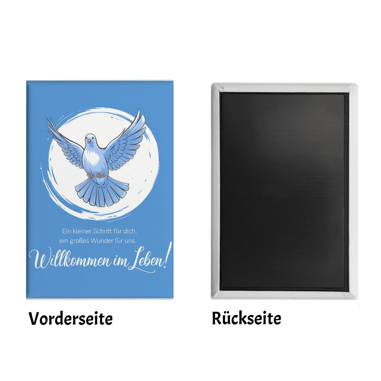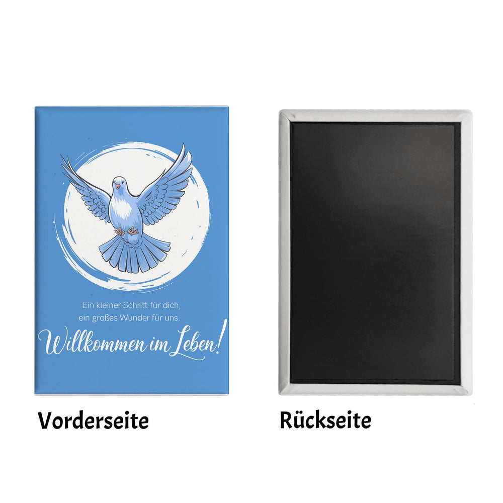 - Dieser rechteckige Magnet ist mehr als nur ein Kühlschrankdekoration. Er vereint Kunst und Bedeutung mit einem liebevollen Spruch: "Ein kleiner Schritt für dich, ein großes Wunder für uns". Der weiße Kreis um die Taube verleiht dem Design einen stilvollen Touch, perfekt für Taufen und freudige Neuanfänge!