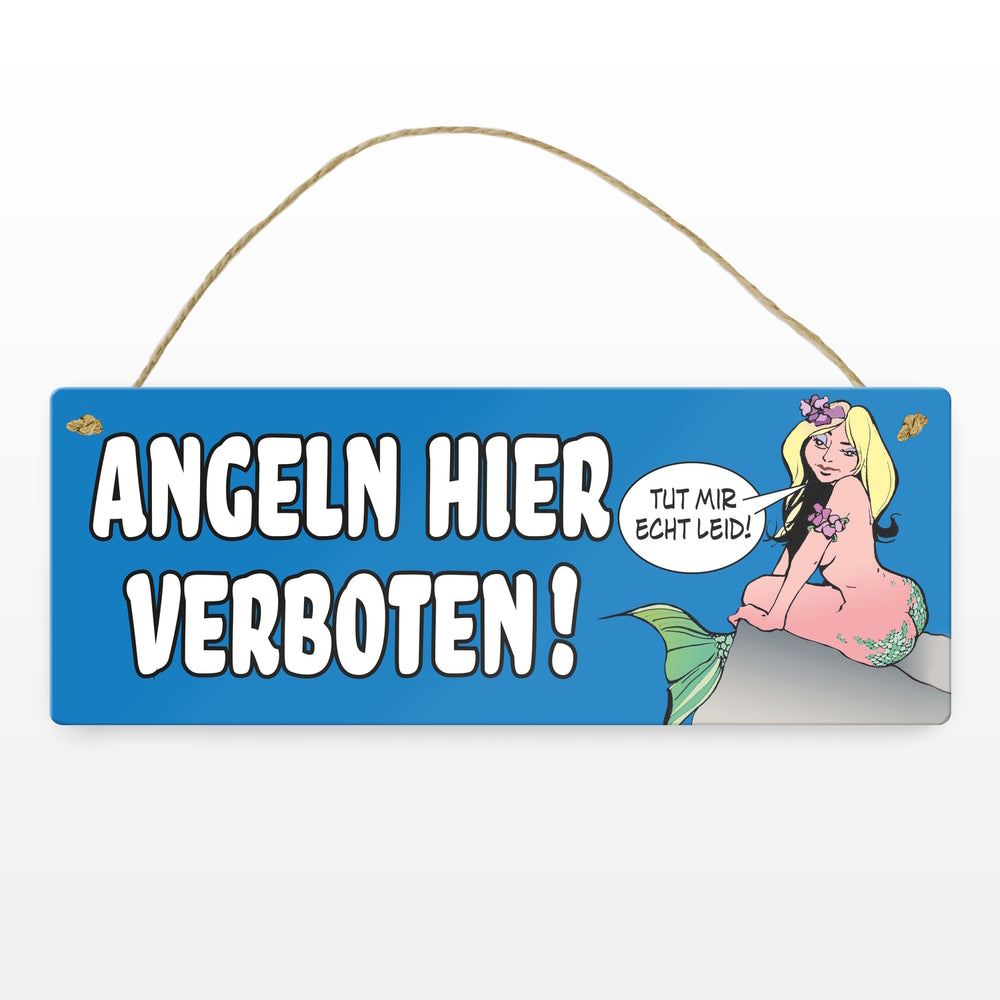- 1x Angeln hier verboten! Metallschild in orange mit Meerjungfrau in der gewählten Größe