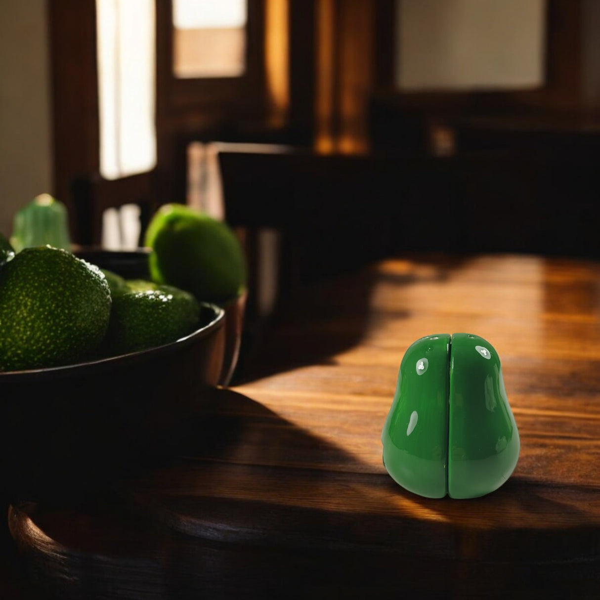Holen Sie sich das Avocado-Salz- und Pfefferstreuer-Set! Perfekt für Küche und Esszimmer, verleiht es Ihrem Tisch eine witzige Note und sorgt für beste Gewürzverteilung. Material: Keramik | Nur von Hand waschen - nicht für die Spülmaschine geeignet.