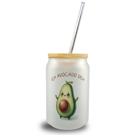 Avocado Trinkglas mit Bambusdeckel mit Spruch Ich Avocado dich