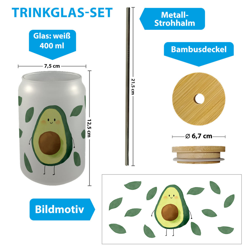 - Lieferumfang: 1x Avocado Trinkglas mit Bambusdeckel im Aquarell-Stil