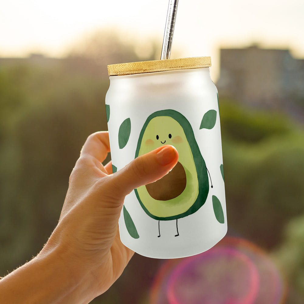 Lächelnde Avocado Trinkglas mit Bambusdeckel