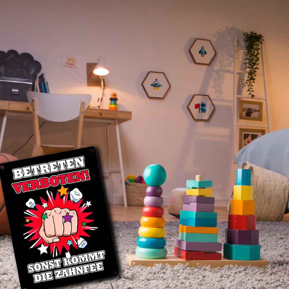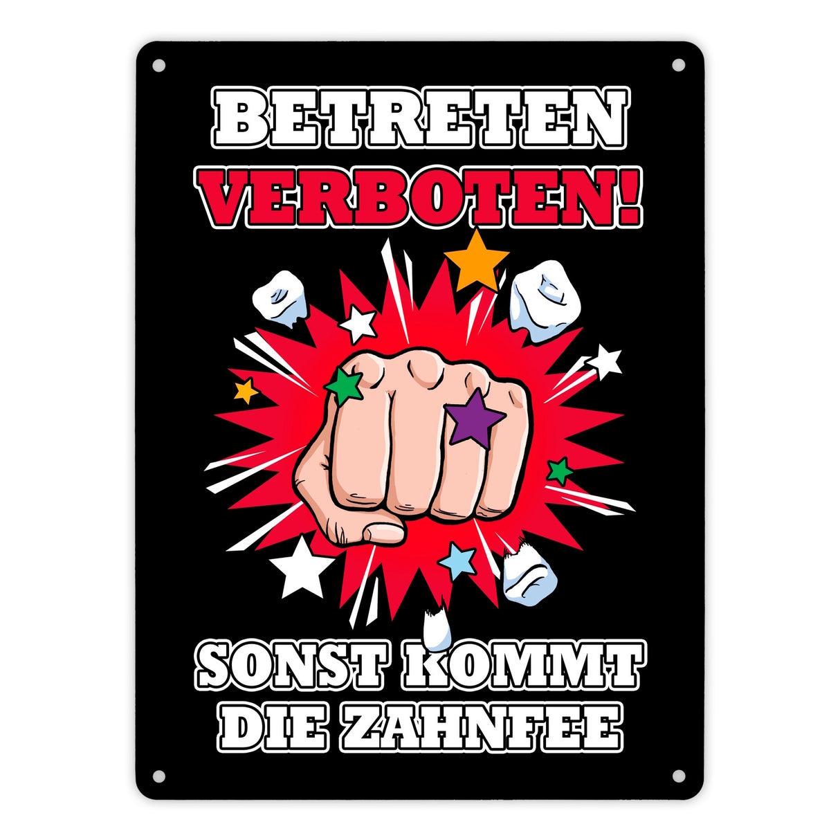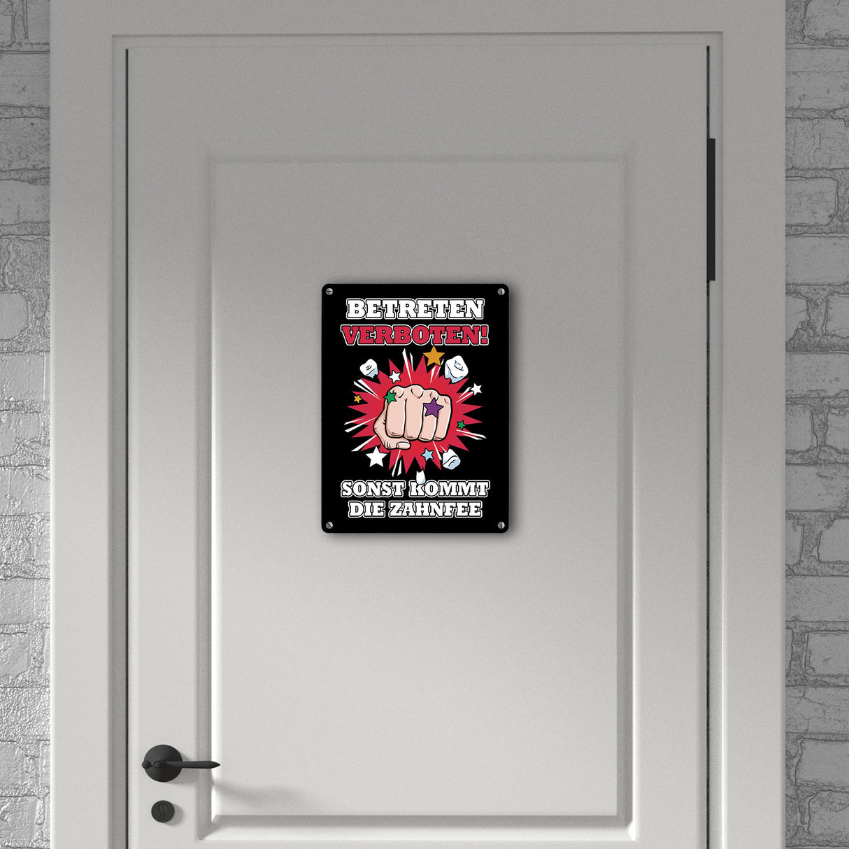 Betreten verboten sonst kommt die Zahnfee Metallschild mit Faust