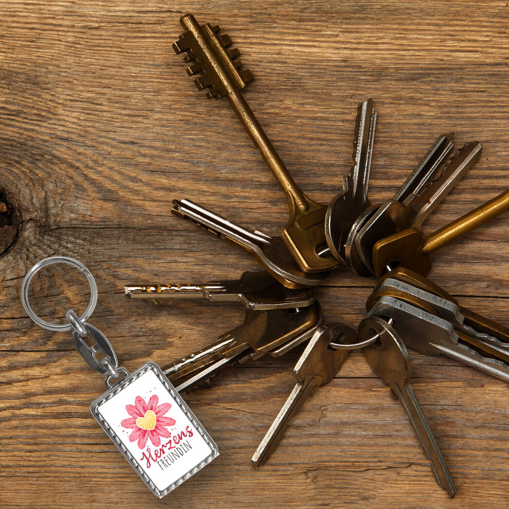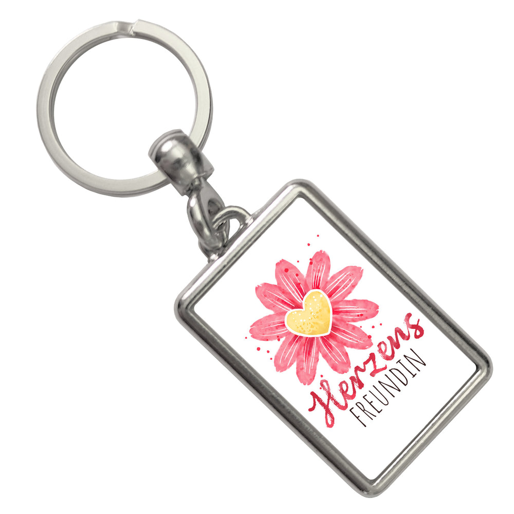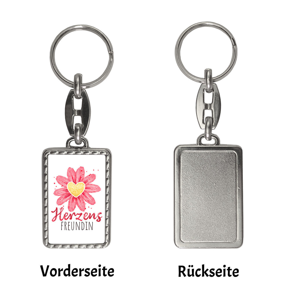 • 1x Blume Schlüsselanhänger mit Spruch Herzensfreundin in der gewählten Ausführung