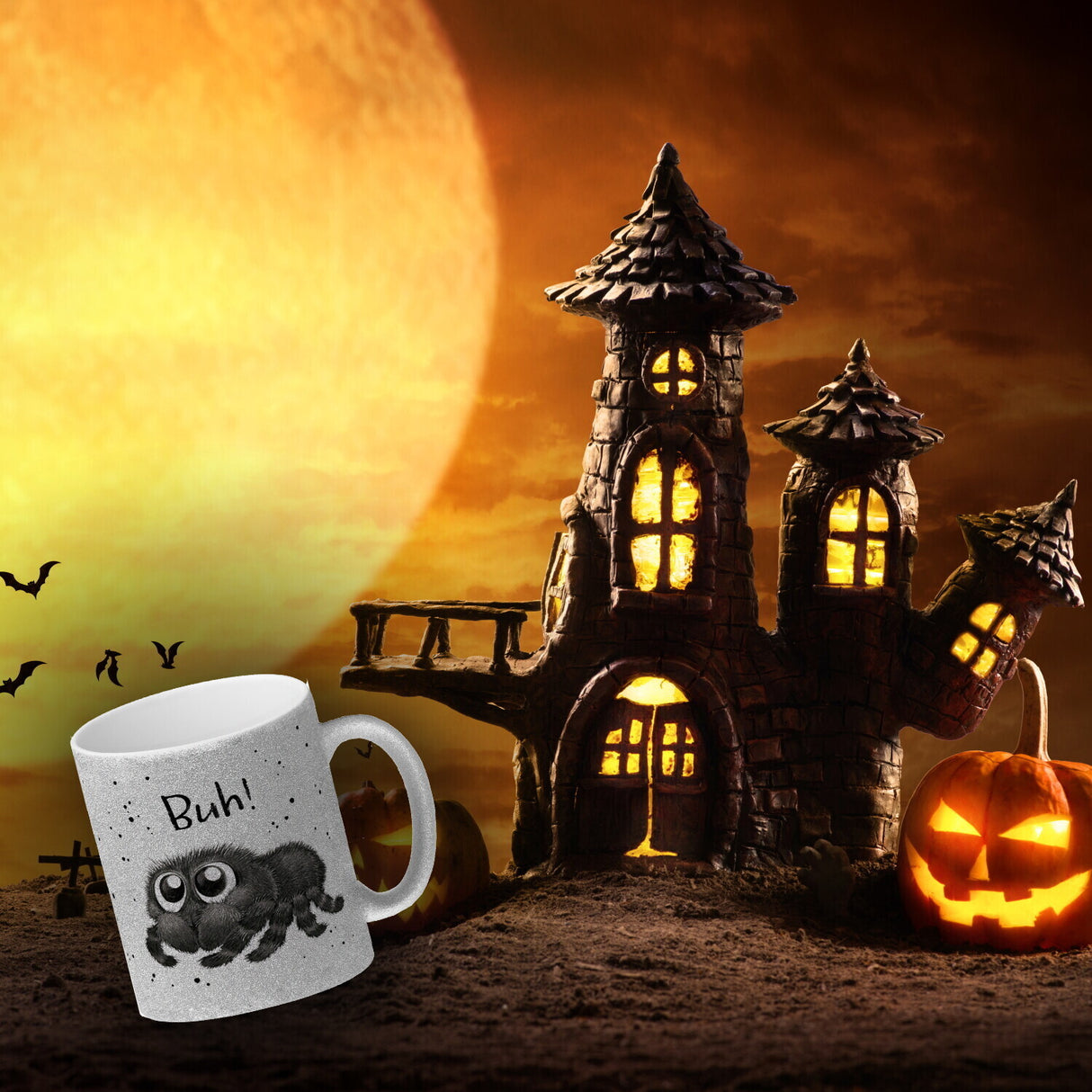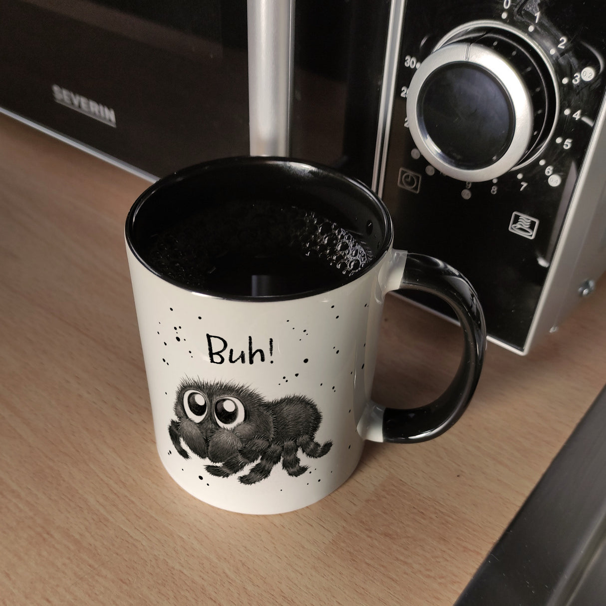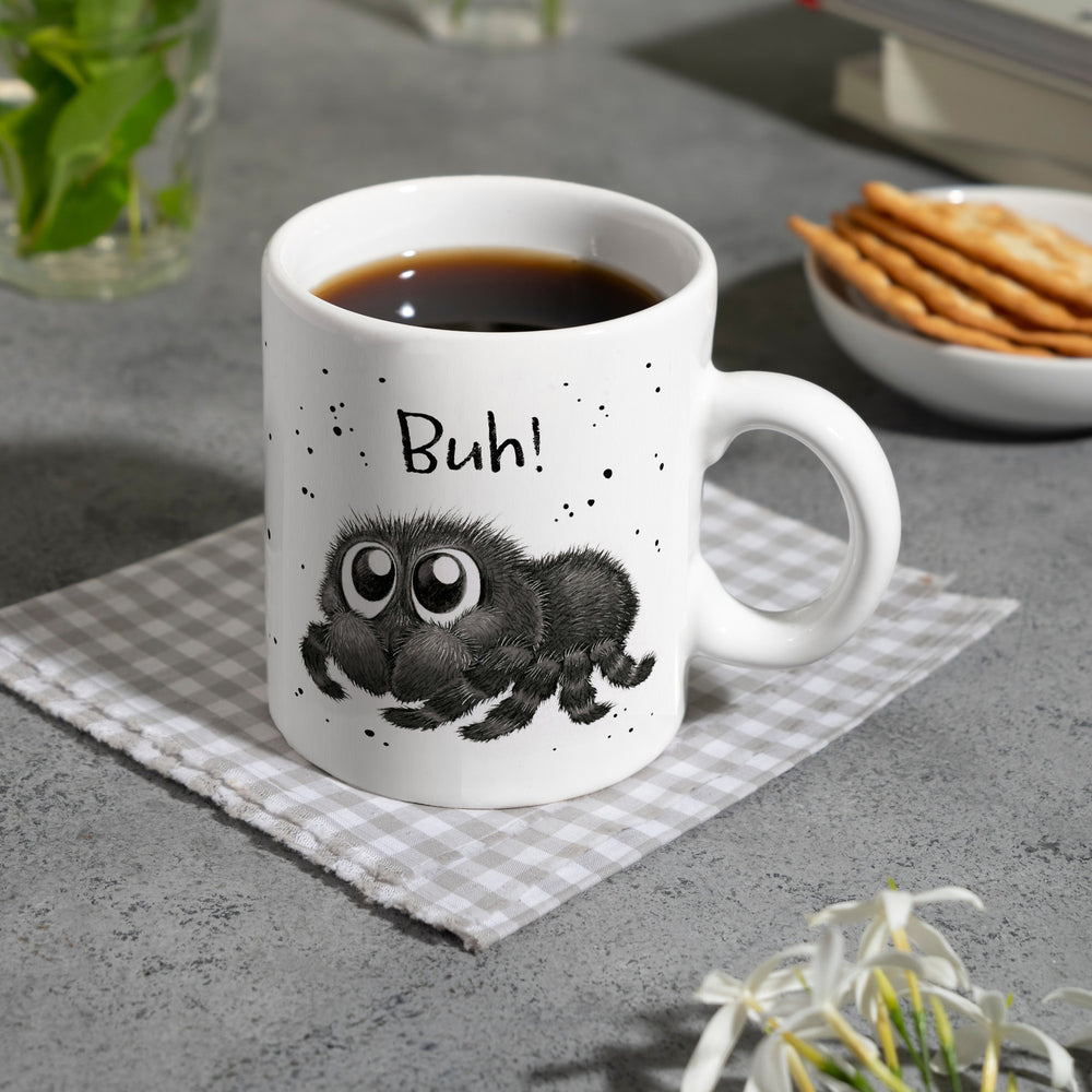 - 1x Buh! Flauschige Spinne Kaffeebecher in der gewählten Ausführung