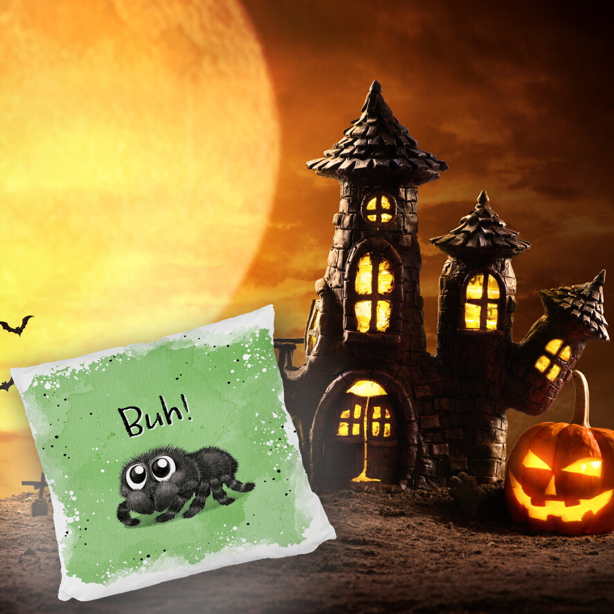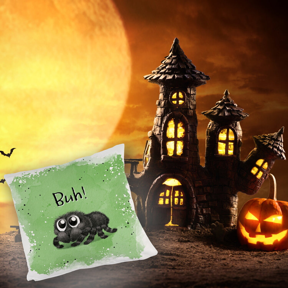 - 1x Buh! Flauschige Spinne Kissen mit Spruch in der gewählten Ausführung
