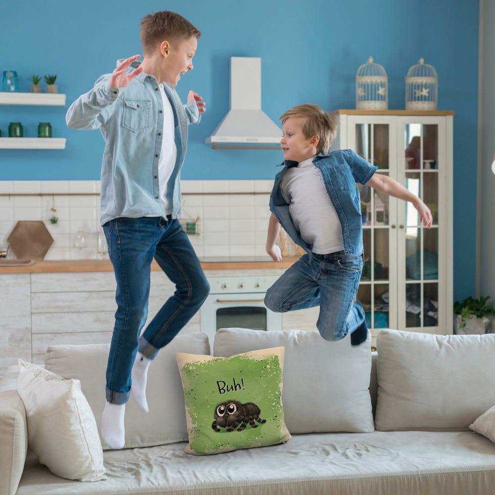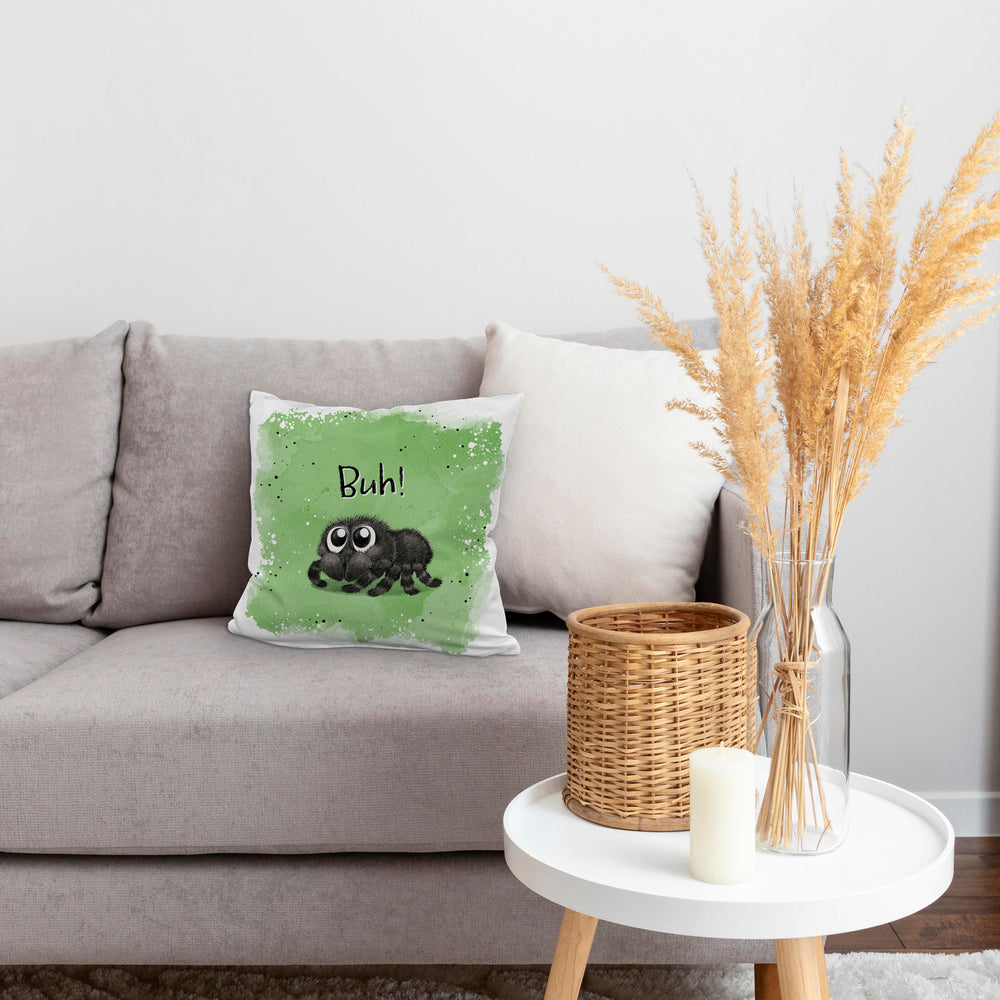 Buh! Flauschige Spinne Kissen mit Spruch