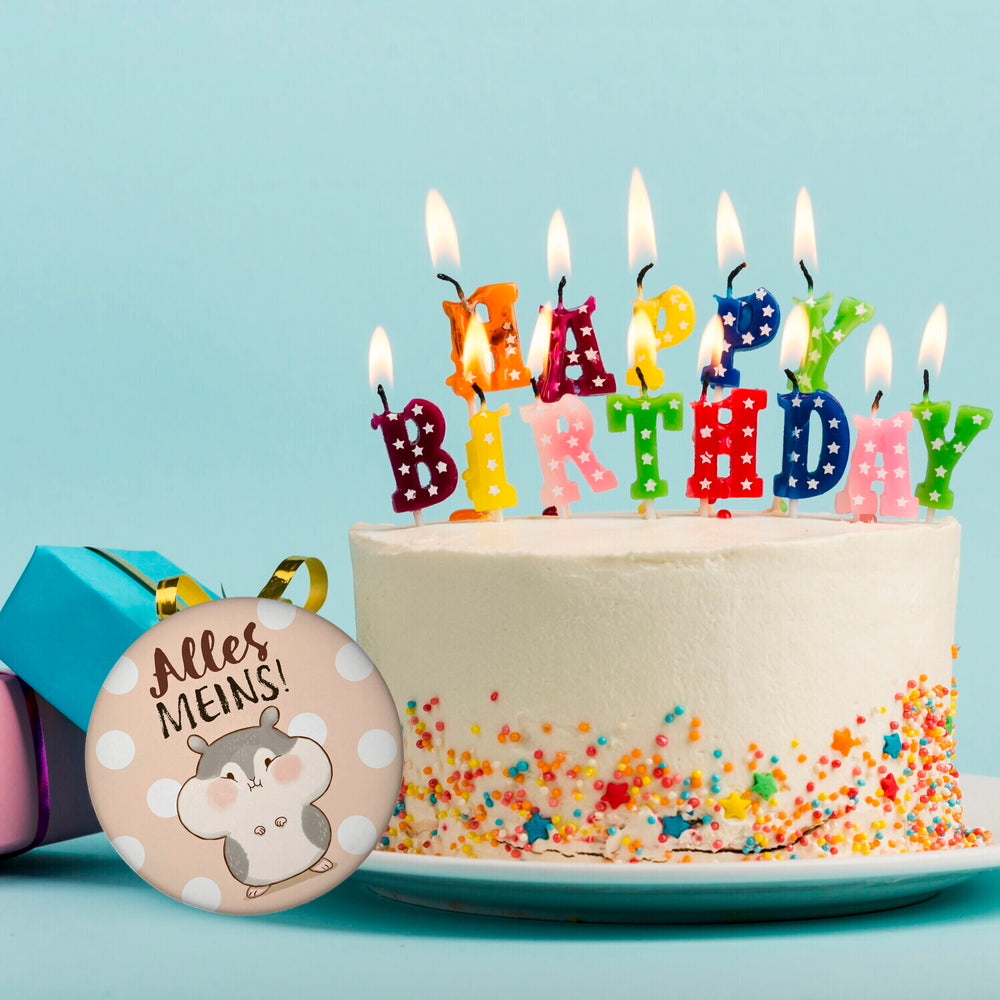 - 1x Hamster Magnet rund rund mit Spruch Alles meins in der gewählten Ausführung