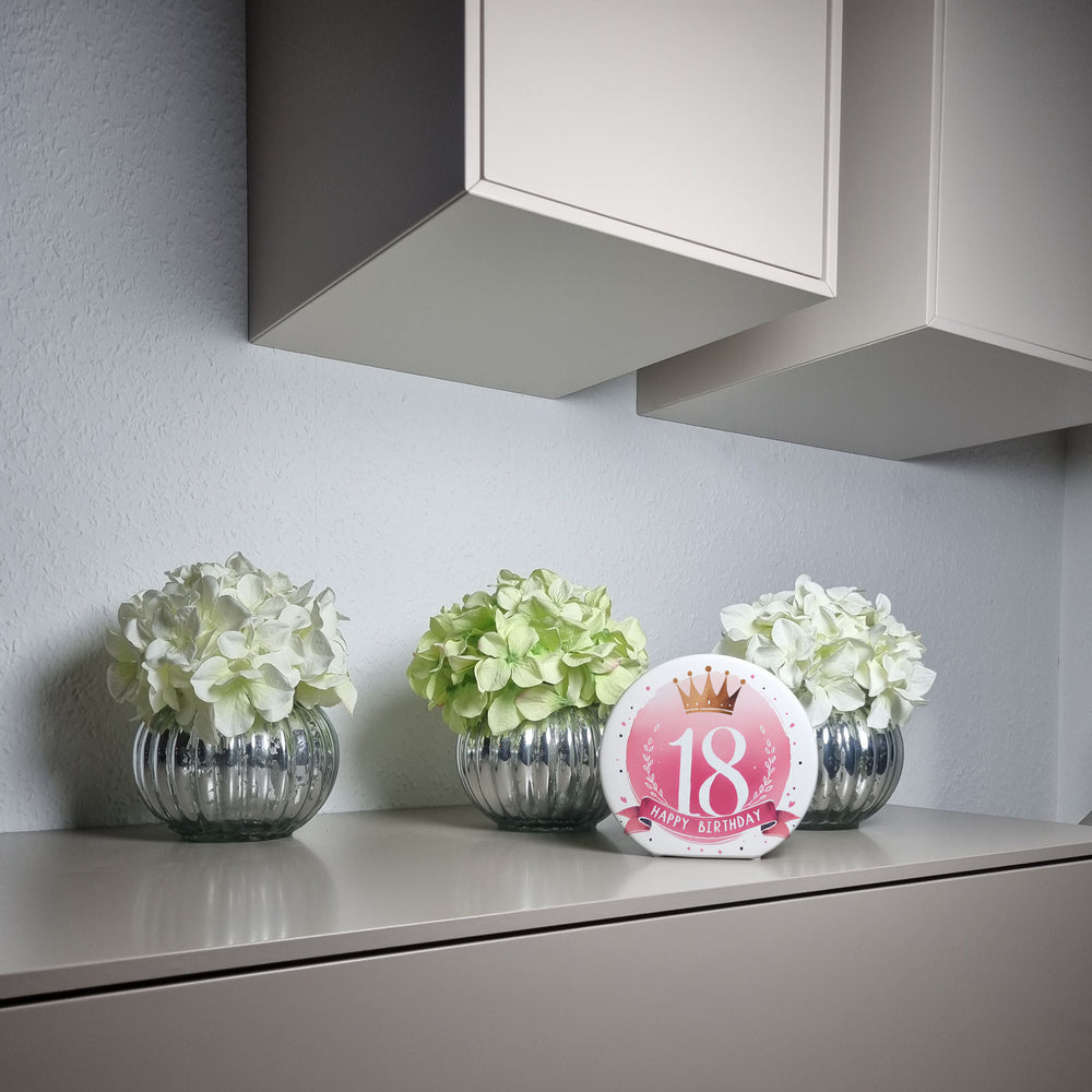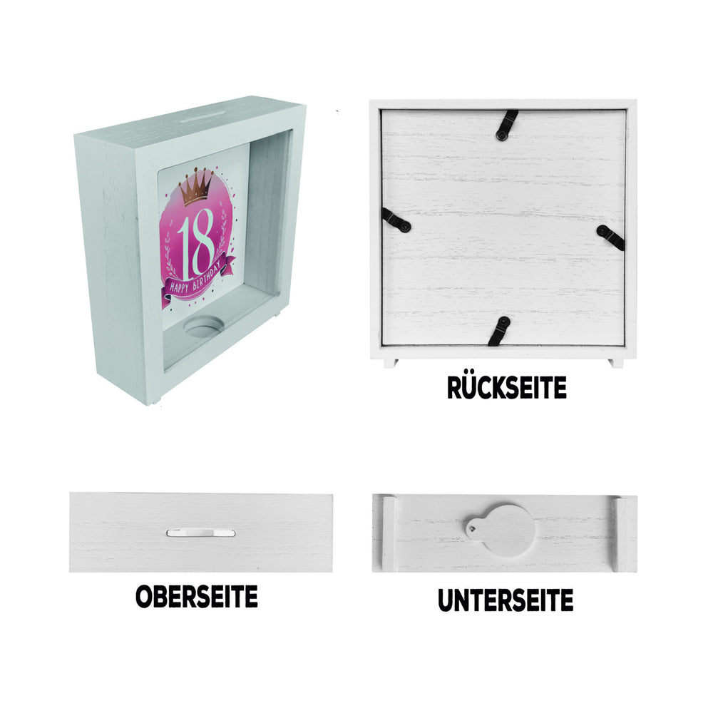 - 1x Happy Birthday 18 Krone Spardose in der gewählten Ausführung
