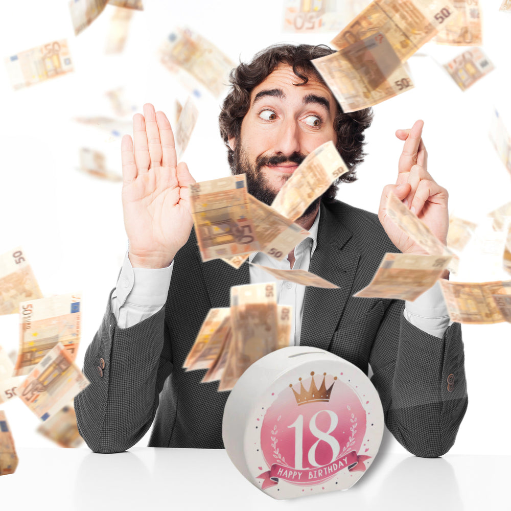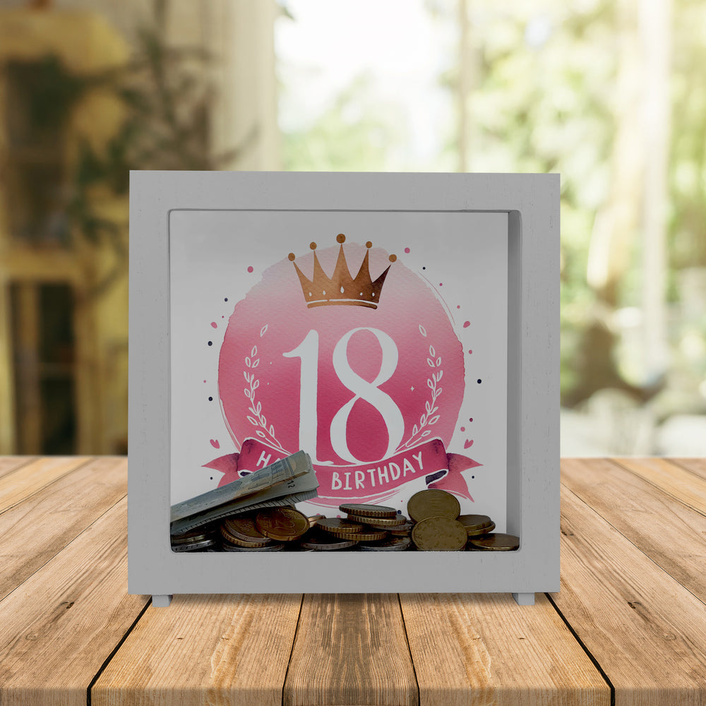 - Mach den 18. Geburtstag unvergesslich! Diese Krone Spardose ist das perfekte Geschenk für die neuen Erwachsenen. Mit Glückwünschen, pinkem Glanz und königlichem Flair wird jeder Cent königlich aufbewahrt. Geburtstag und Jubiläum waren noch nie so glamourös!