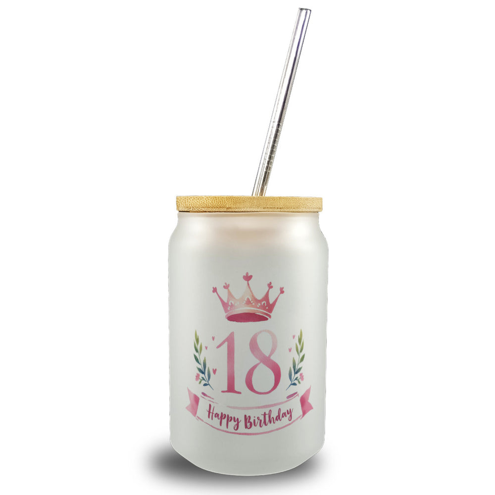 - Erlebe deinen 18. Geburtstag wie eine Königin mit unserem "Happy Birthday 18" Trinkglas! Pinker Text auf einem rosa Hintergrund, gekrönt von eleganten, kleinen Herzen und einer prächtigen Krone. Perfekt für deine Geburtstagsparty!
