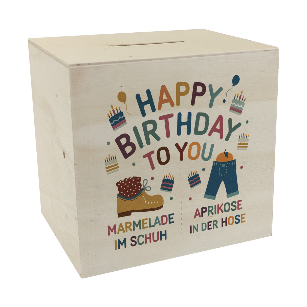 • 1x Happy Birthday to you Marmelade im Schuh Spardose in der gewählten Ausführung
