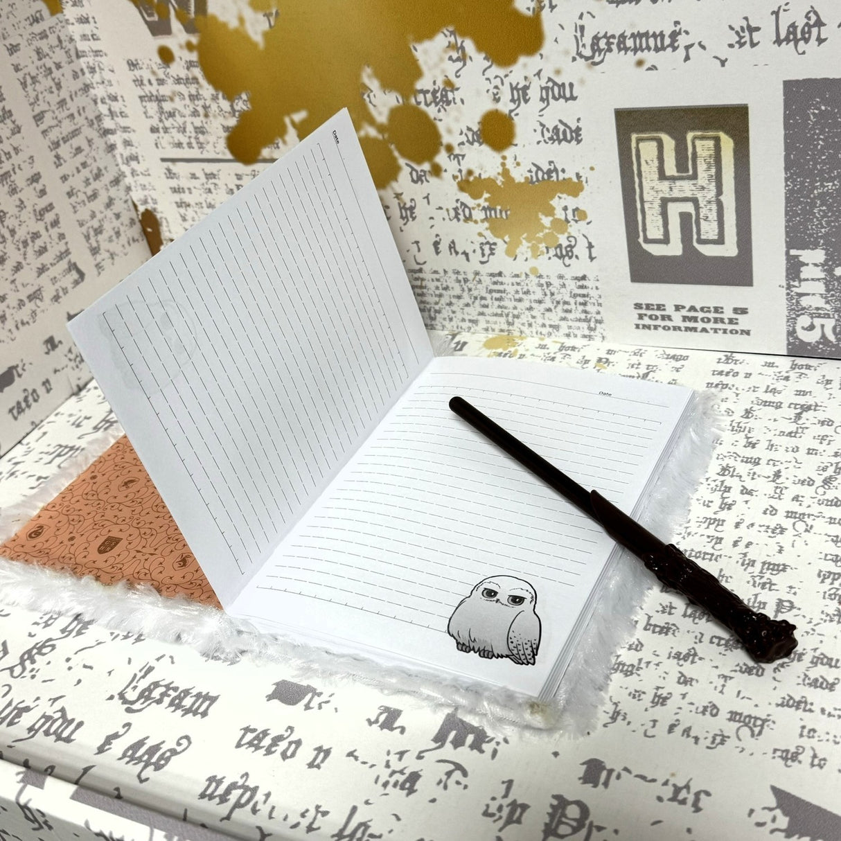 - Kaufe jetzt das Harry Potter Hedwig Notizbuch mit Zauberstab-Kugelschreiber und verzaubere deinen Alltag! Es ist das perfekte Geschenk für jeden Potterhead – ob zum Geburtstag, Weihnachten oder einfach so, um ein Lächeln zu zaubern. Überrasche deine Freunde mit einem Geschenk, das ebenso magisch wie praktisch ist!