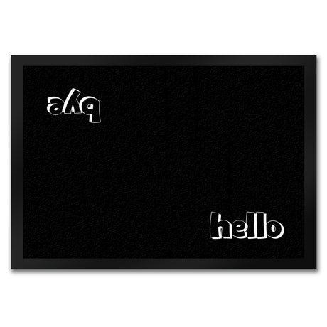 - Die Fußmatte mit hello bye Motiv ist mehr als nur ein Fußabtreter. Sie ist ein Statement! Mit ihrem witzigen Design auf schwarzem Hintergrund, zieht sie alle Blicke auf sich. Sie ist perfekt, um Gäste zu begrüßen und gleichzeitig den Schmutz draußen zu halten.