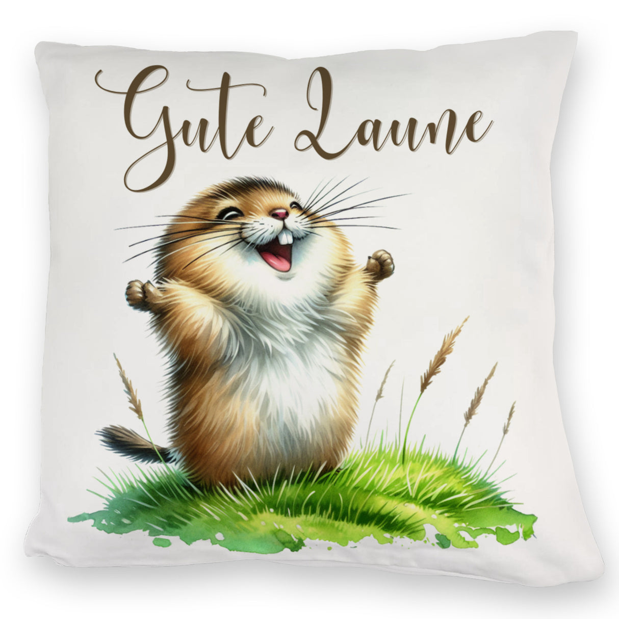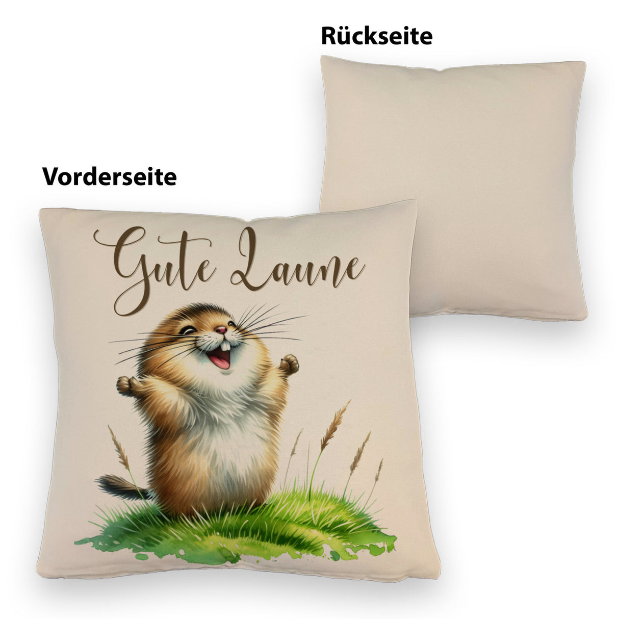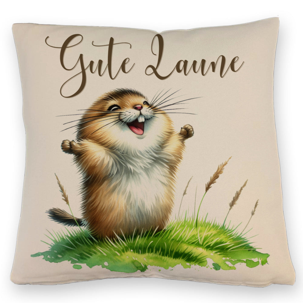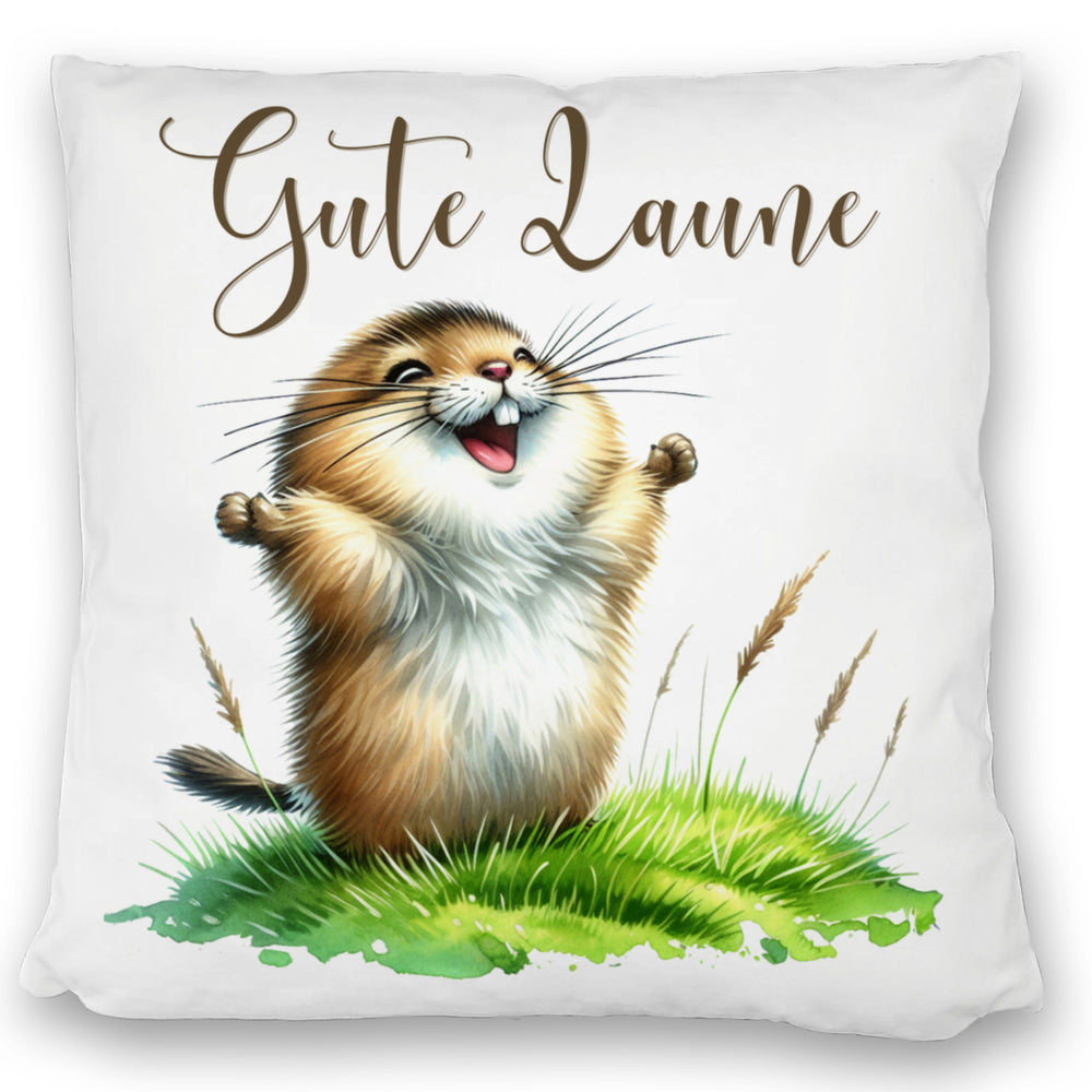 jubelnder Lemming Kissen mit Spruch Gute Laune